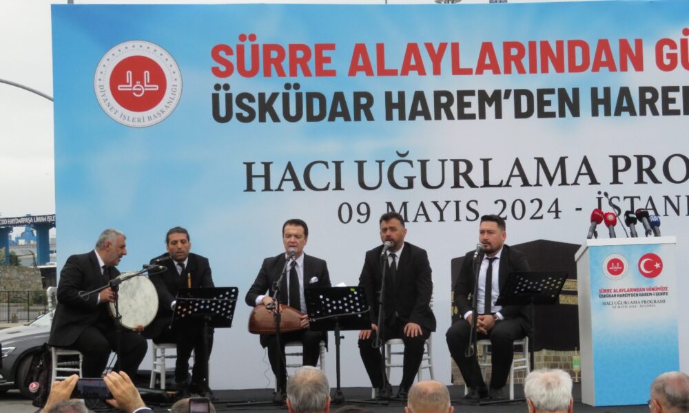 İSTANBUL'dan Kutsal topraklara gidecek hacı adayları için "Surre Alaylarından Günümüze Üsküdar Harem'den Harem-i Şerif'e" programı düzenlendi. 360 kişiden oluşan ilk kafile, Hac görevini yerine getirmek üzere Üsküdar Harem'den kutsal topraklara uğurlandı. ( FOTOĞRAF: İSA ALMAÇAYIR / İSTANBUL DHA ) FOTOĞRAFTA: DİYANET İŞLERİ BAŞKANI PROF. DR. ALİ ERBAŞ