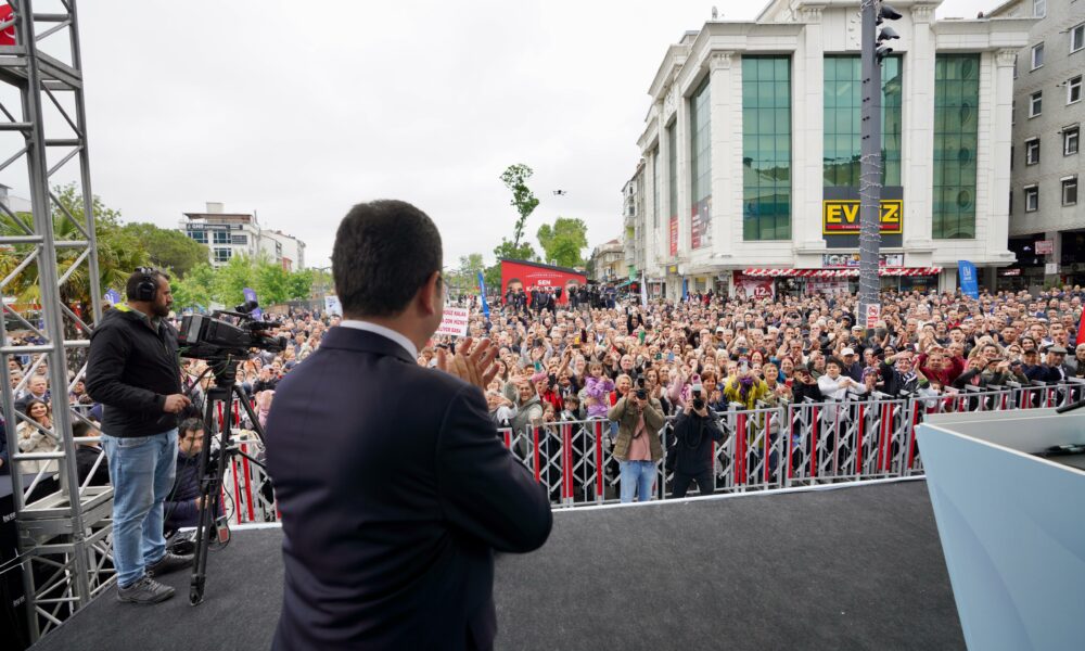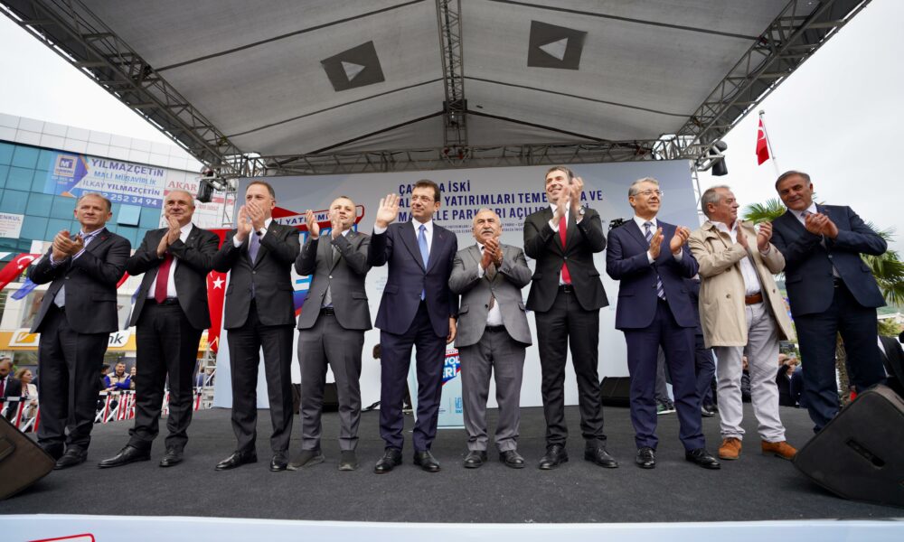 İstanbul Büyükşehir Belediye Başkanı Ekrem İmamoğlu, Çatalca’daki Cumhuriyet Meydanı’nda İSKİ Altyapı Yatırımları Temel Atma ve Mahalle Parkları Açılış Töreni’ne katıldı. Fotoğraftaki: İBB Başkanı Ekrem İmamoğlu, Çatalca BB Erhan Güzel Fotoğraf: İstanbul DHA