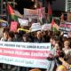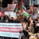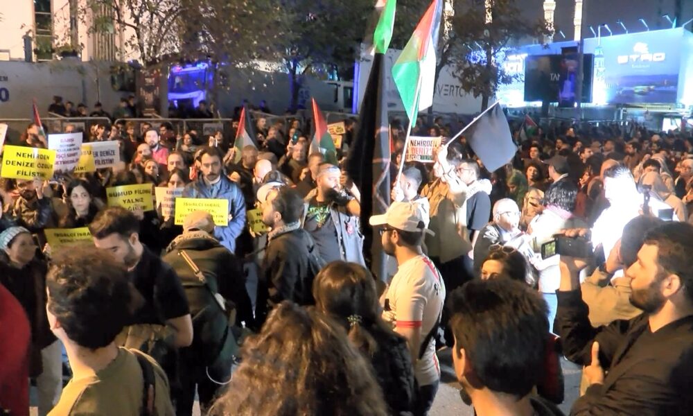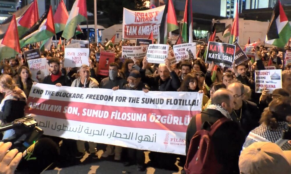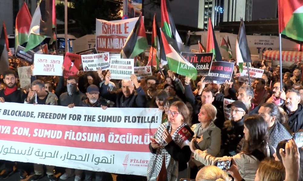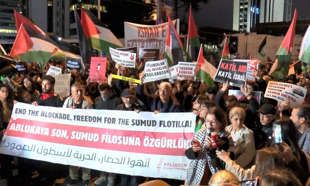 Beşiktaş’ta bulunan İsrail Başkonsolosluğu önünde toplanan kalabalık sloganlar atarak İsrail’in Gazzede gerçekleştirdiği soykırımı ve Sumud Filosuna yapılan müdahaleyi protesto etti. Çeşitli sloganlar atan grup basın açıklamasının okunmasının ardından dağıldı.