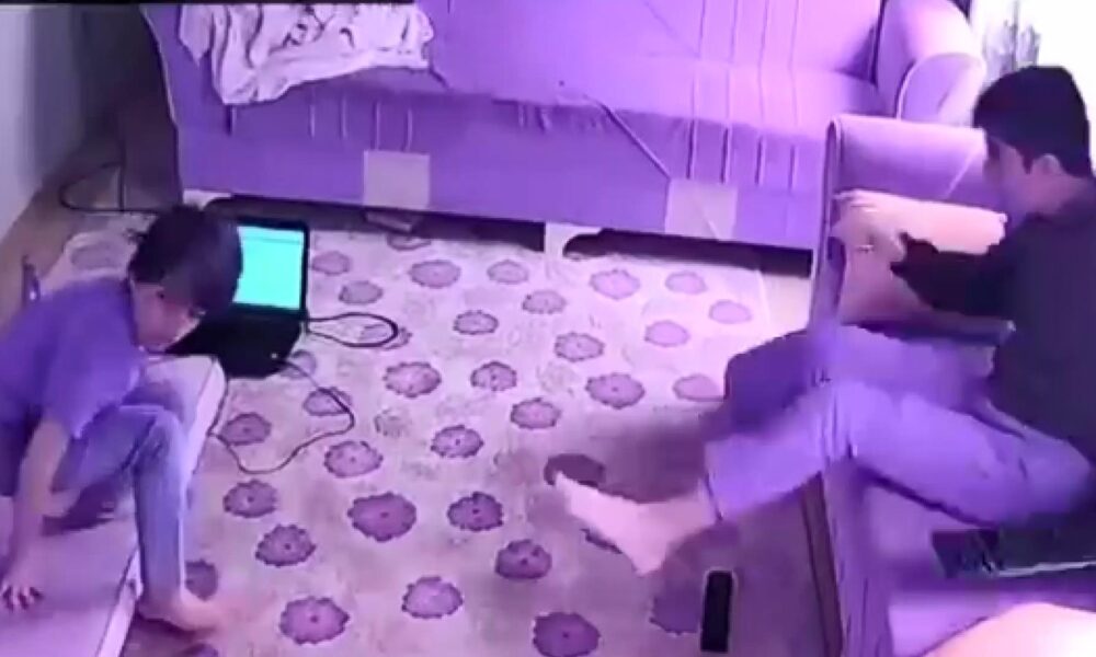 Arnavutköy'de ise iki kardeş otuma odasında vakit geçirdikleri sırada deprem meydana geldi. Fotoğraf: Doğan Can CESUR/ İstanbul DHA