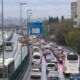 İstanbul’da yağışlı havanın etkisi ile akşam saatlerinde trafik yoğunluğu oluştu. İstanbul Büyükşehir Belediyesi Trafik Yoğunluğu Haritası verilerine göre saat 19.30 itibariyle yoğunluk yüzde 62’ye ulaştı. Kentteki ana arterlerde trafik durma noktasına geldi. Mecidiyeköy D-100 Karayolu’nda araçların güçlükle ilerlediği görüldü.