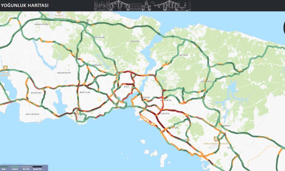 İstanbulda akşam saatlerinde trafik yoğunluğu oluştu. İstanbul Büyükşehir Belediyesi Trafik Yoğunluğu Haritası verilerine göre saat 19.00 itibariyle yoğunluk yüzde 76ya ulaştı. Kentteki ana arterlerde trafik durma noktasına geldi. Küçükçekmece Basın ekspres yolunda araçların güçlükle ilerlediği görüldü.
