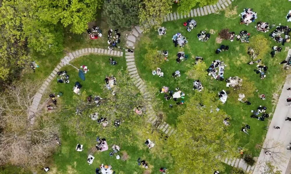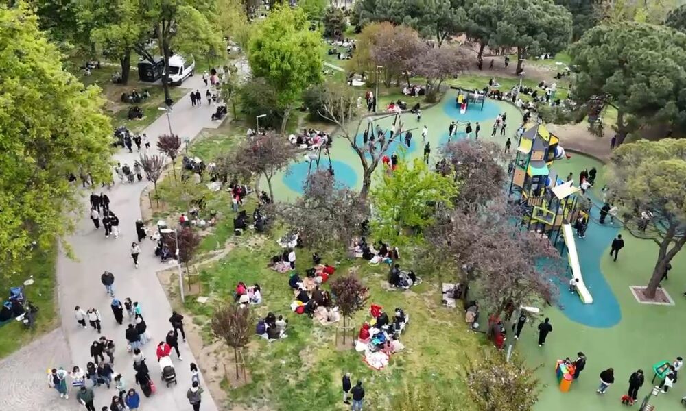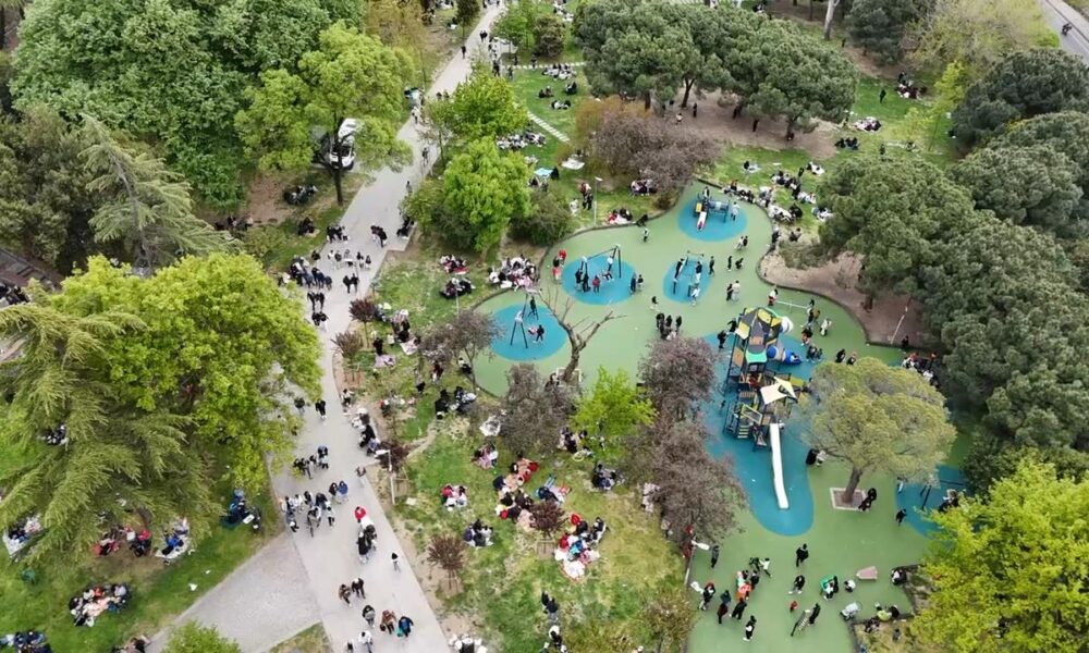 İstanbul – İstanbul’da deprem sonrası Maçka Parkı’nda yoğunluk havadan görüntülendi