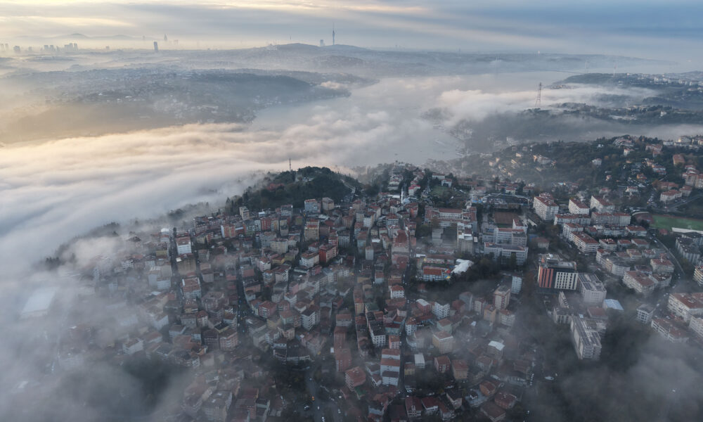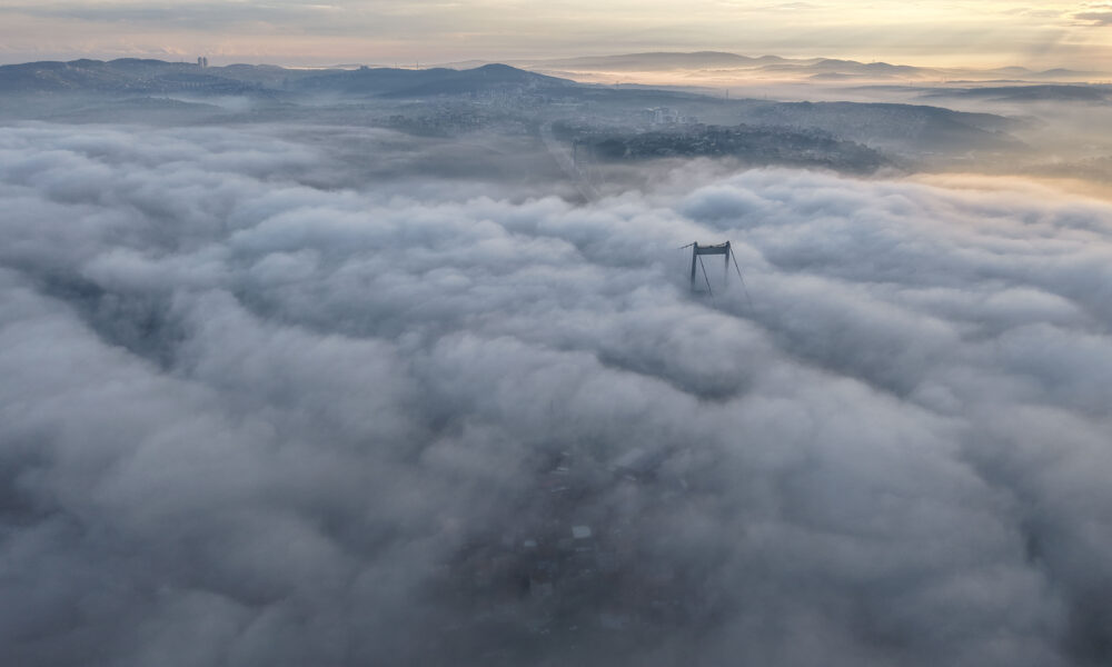 İstanbul- İstanbul’da etkili olan sis havadan görüntülendi