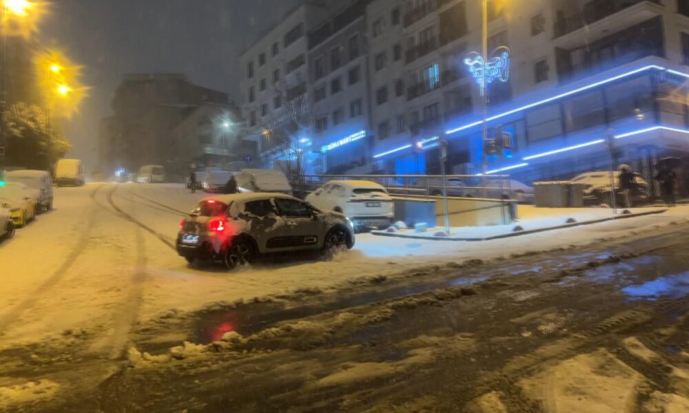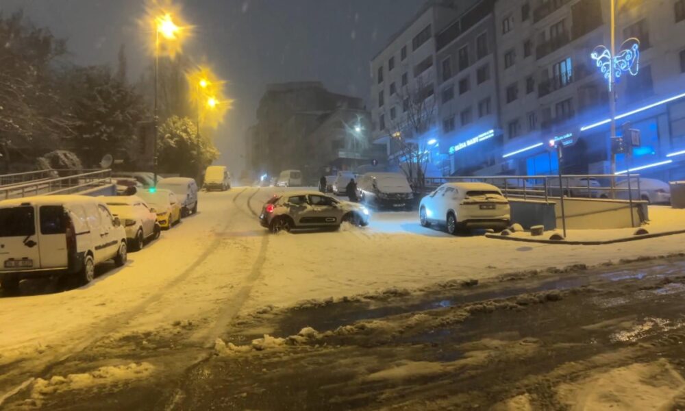 İstanbul – İstanbul’da kar yağışı; kayan araçların kaza yaptığı anlar kamerada