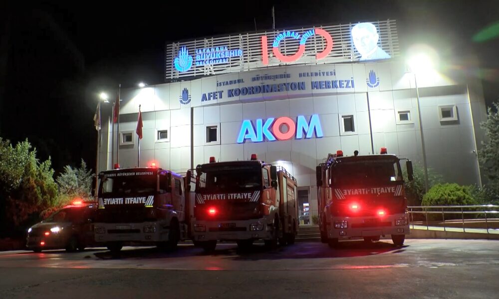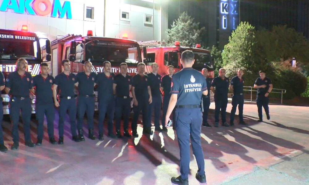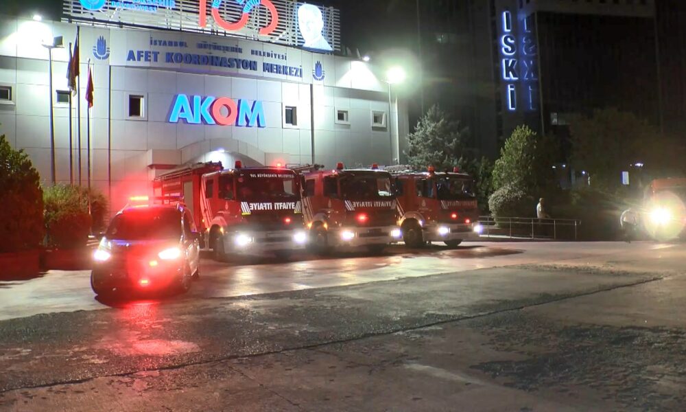 Afet Koordinasyon Merkezinde(AKOM) toplanan İstanbul Büyükşehir Belediyesine ait itfaiye ekipleri, söndürme çalışmalarına destek olmak için son hazırlıklarını yaparak İzmirin Karşıyaka ilçesine doğru, 7 araç ve 31 personel ile gece saatlerinde yola çıktı.