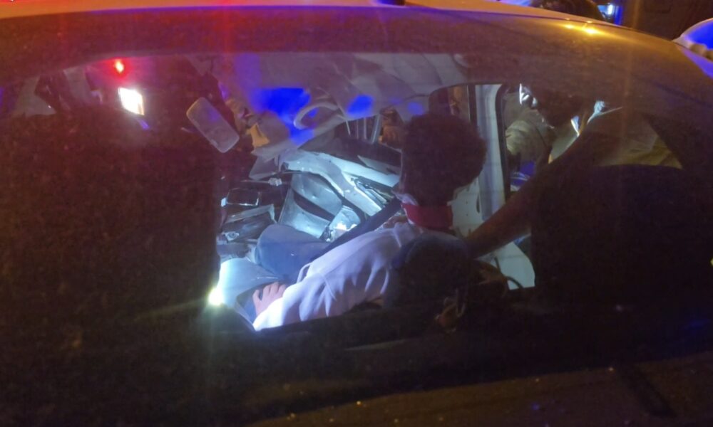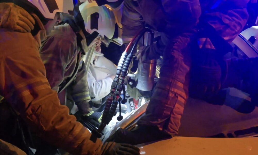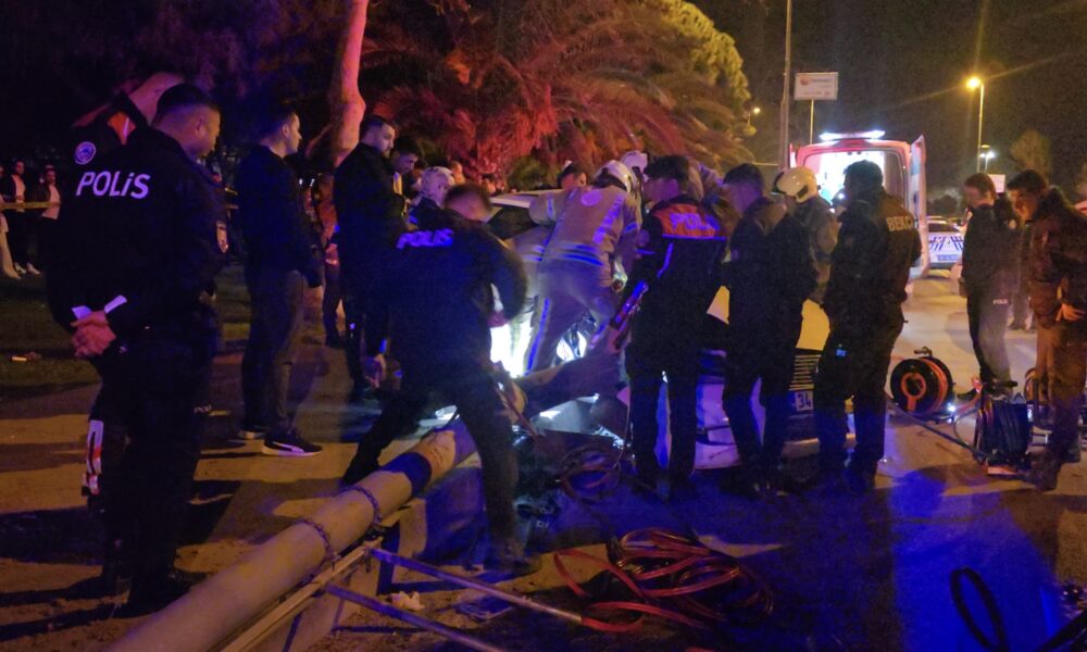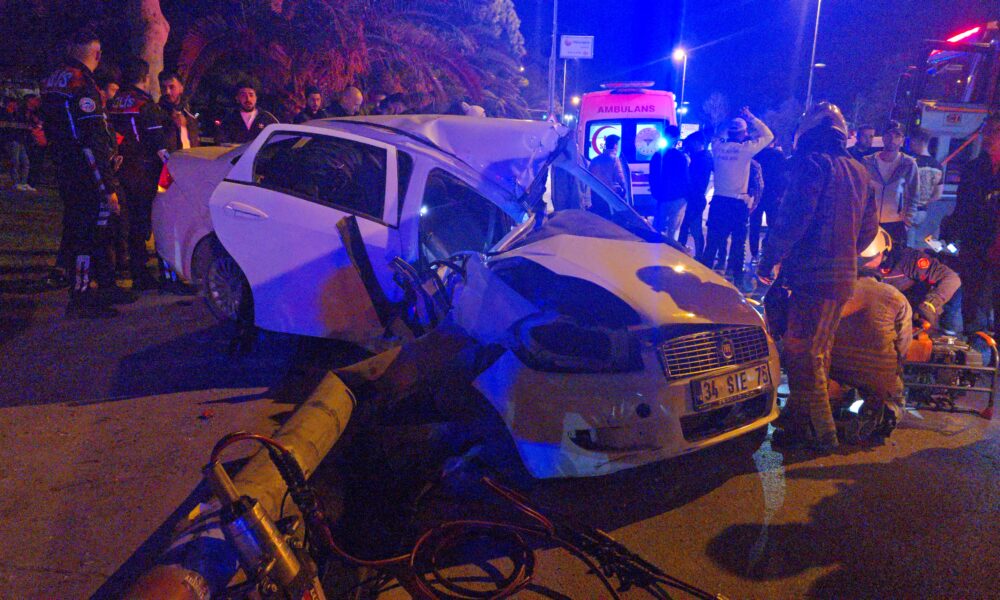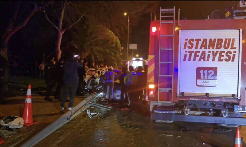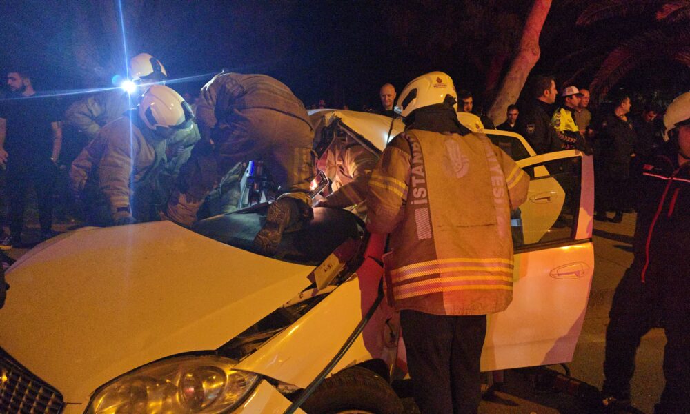 Kadıköy’de aydınlatma direğine çarpan otomobilde sıkışan yaralıları itfaiye kurtardı