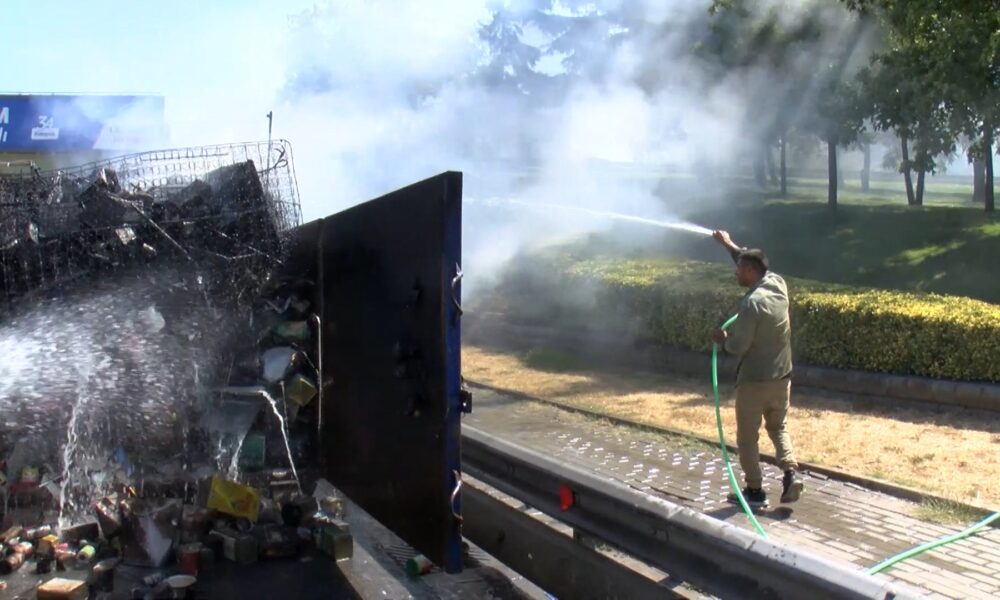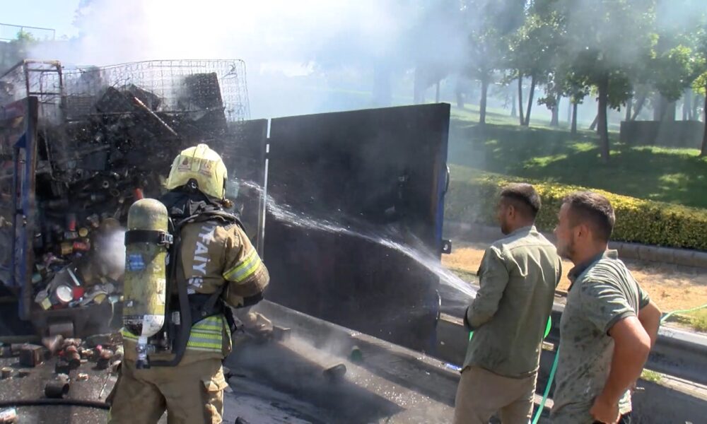 İstanbul-Kadıköy’de hurda yüklü kamyonette çıkan yangın söndürüldü