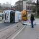 Kadıköy’de mıcır yüklü hafriyat kamyonu devrildi