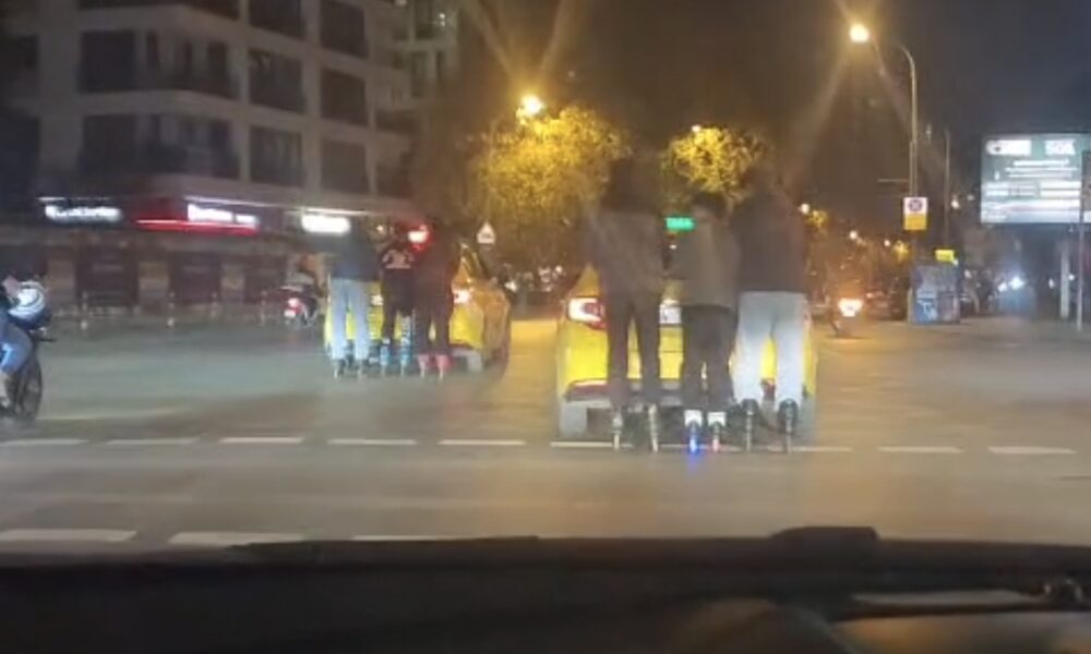 Olay, akşam saatlerinde Bağdat Caddesinde meydana geldi. Edinilen bilgiye göre, patenli 6 kişi trafikte seyir halinde olan iki taksinin arkasına tutunarak ilerlemeye başladı. Trafikte kendi can güvenliklerini tehlikeye atan 6 kişi, aynı zamanda diğer sürücüler içinde risk oluşturdu. Gençlerin tehlikeli yolculuğu başka bir sürücünün cep telefonu kamerasıyla kaydedildi.