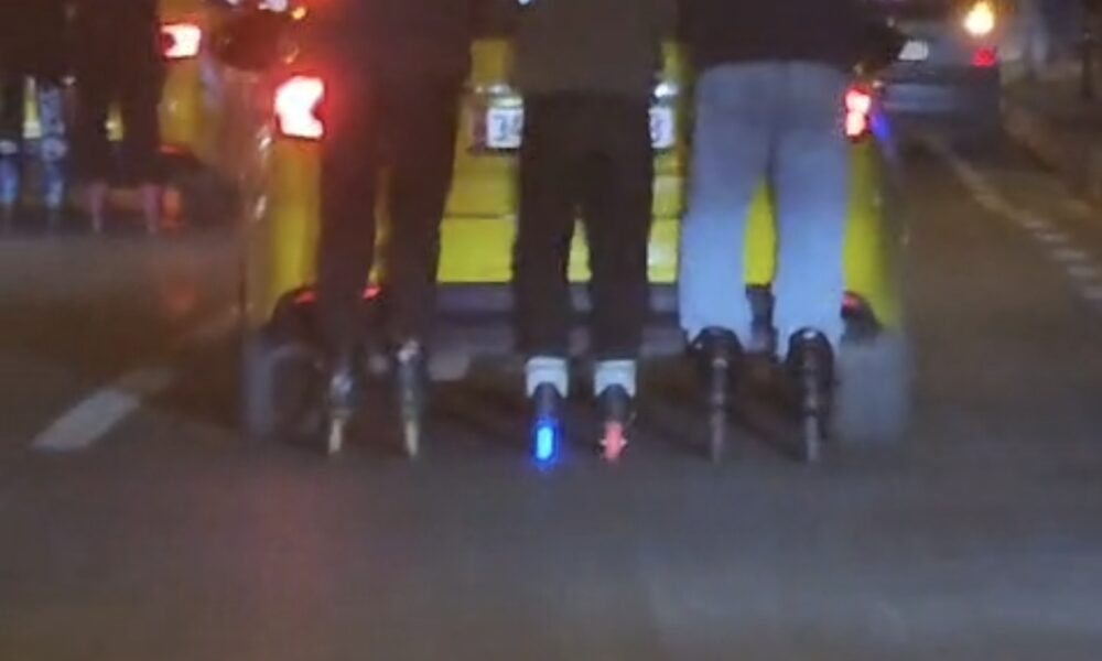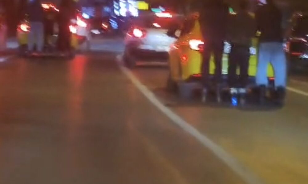 İstanbul – Kadıköy’de patenli 6 kişinin tehlikeli yolculuğu kamerada