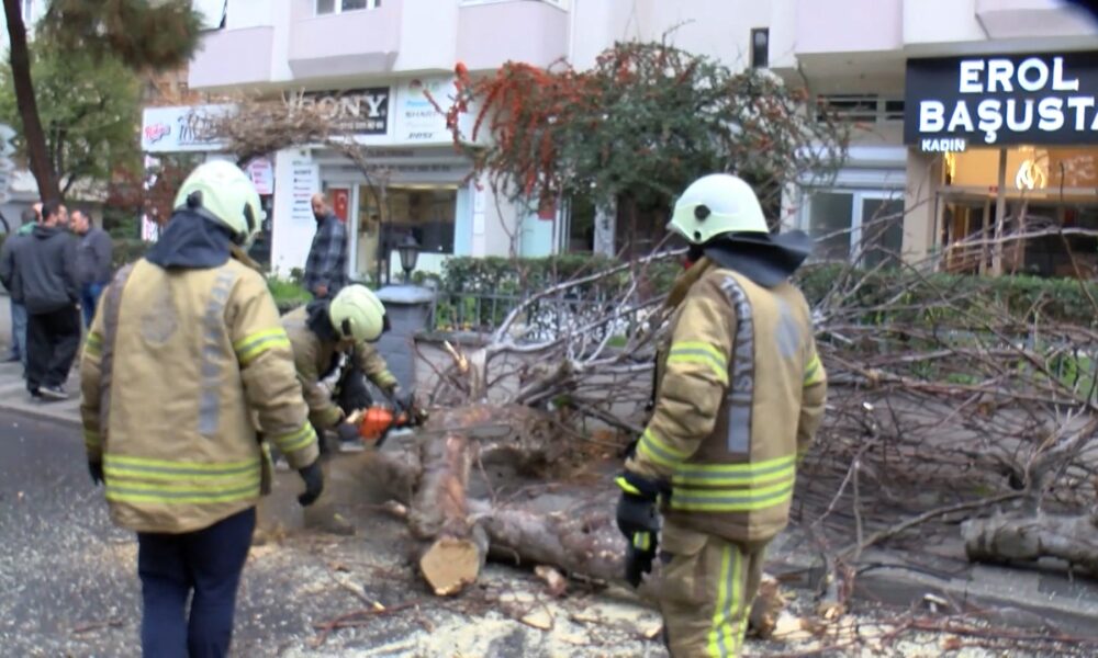 İstanbul- Kadıköy’de seyir halindeki cipin üstüne ağaç devrildi