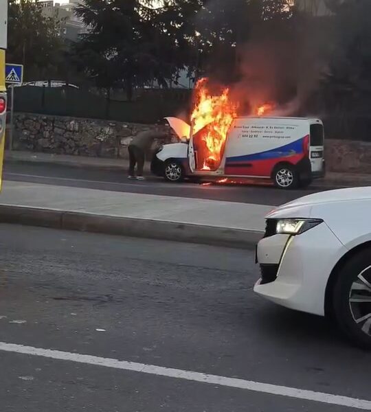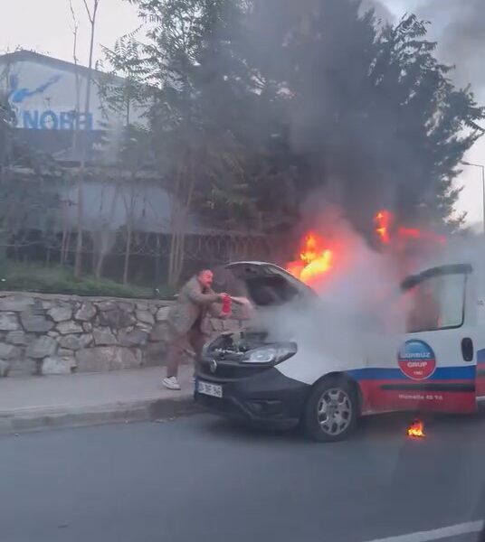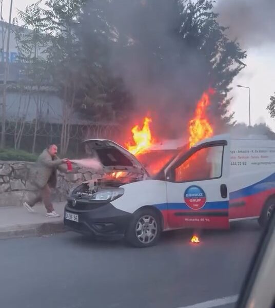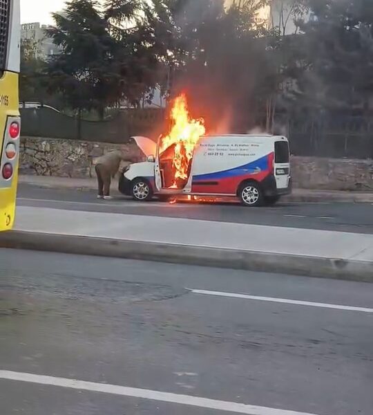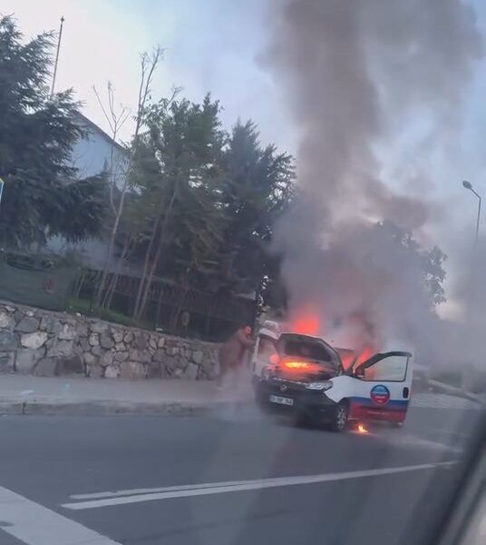 İstanbul- Kağıthane’de hafif ticari araç alev alev yandı