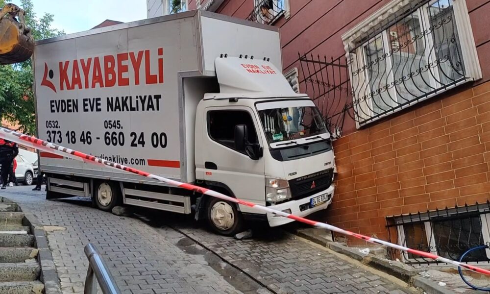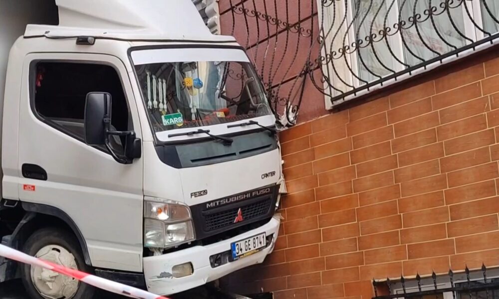 İstanbul- Kağıthane’de kamyonet binaya çarptı; kaza anı kamerada