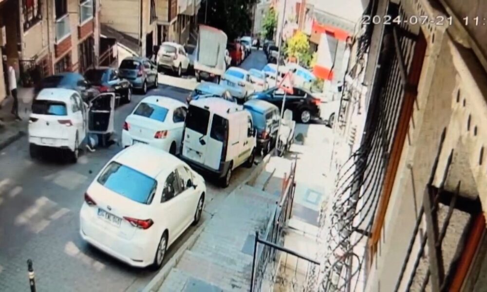 İstanbul – Kağıthane’de kontrolden çıkan otomobilden atladı; kaza anı kamerada