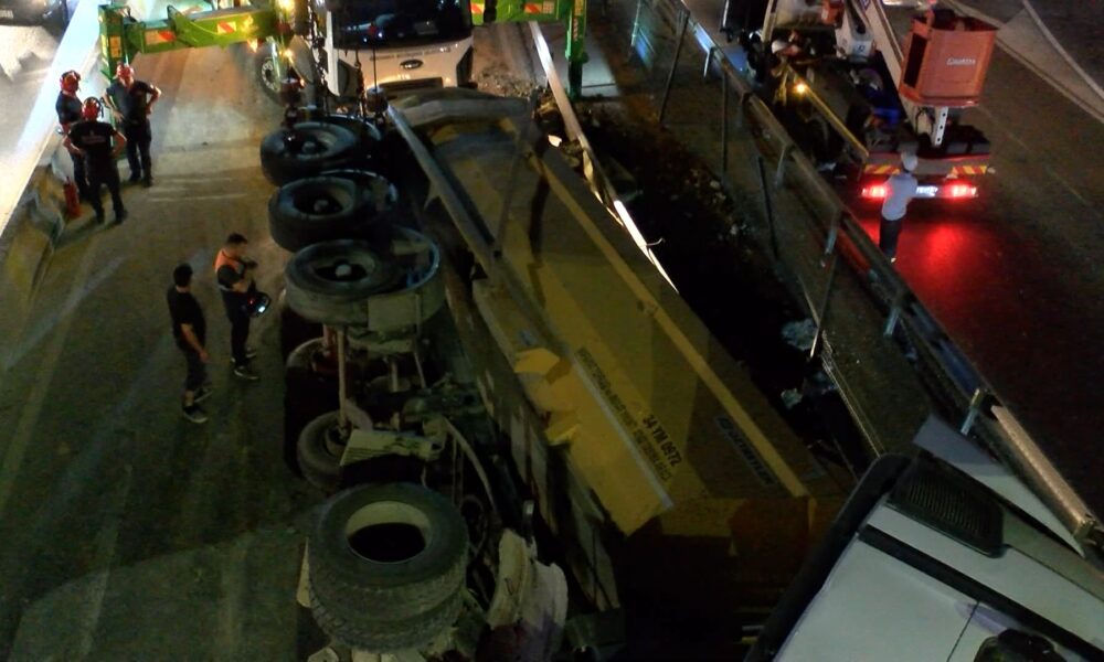 İstanbul – Kağıthane’de moloz yüklü TIR devrildi