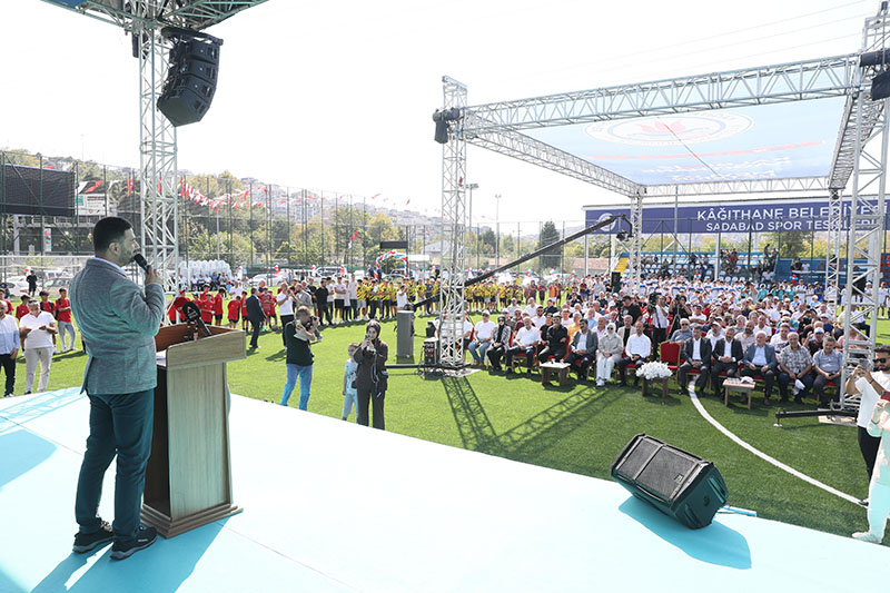 Açılışta konuşan Kağıthane Belediye Başkanı Mevlüt Öztekin, “Biz özellikle sağlıklı nesiller yetişsin diye, çocuklarımız hafta sonları, hafta içleri ve okul sonrası gelsin burada güzelce sporlarını yapsınlar diye futbol sahalarımızı, spor sahalarımızı yeniliyoruz. İşte bunlardan bir tanesi de şu anda bulunduğumuz Sadabad Spor Sahası” dedi.