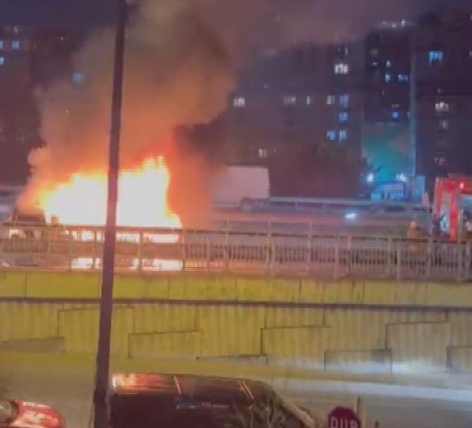 İstanbul – Kağıthane’de seyir halindeki taksi alev alev yandı
