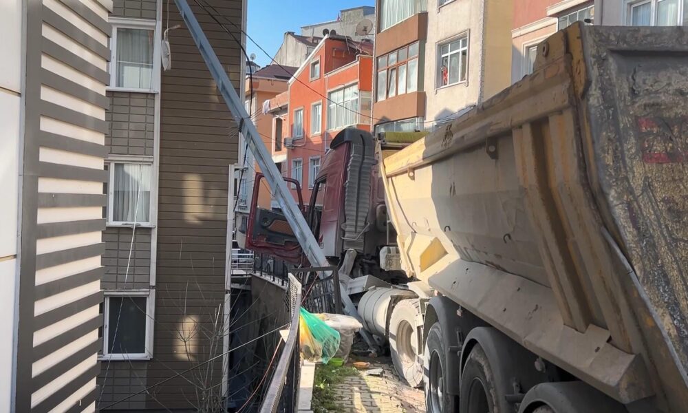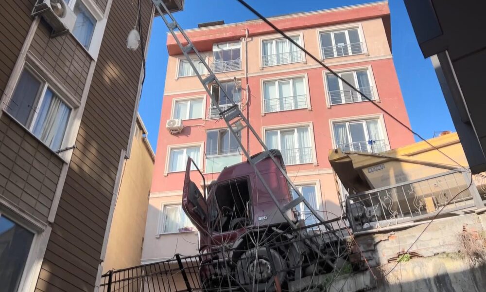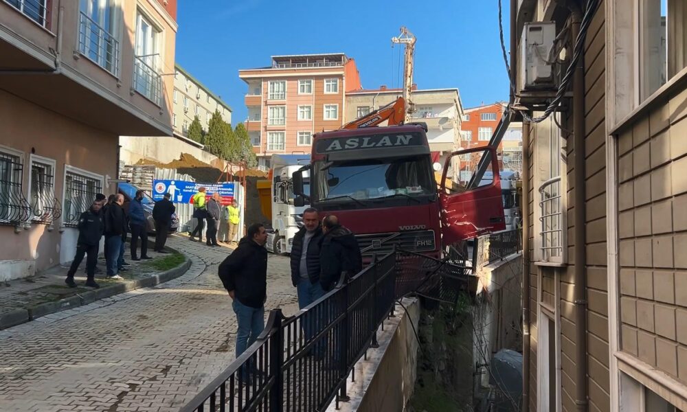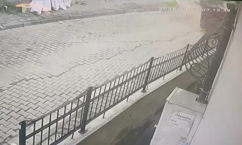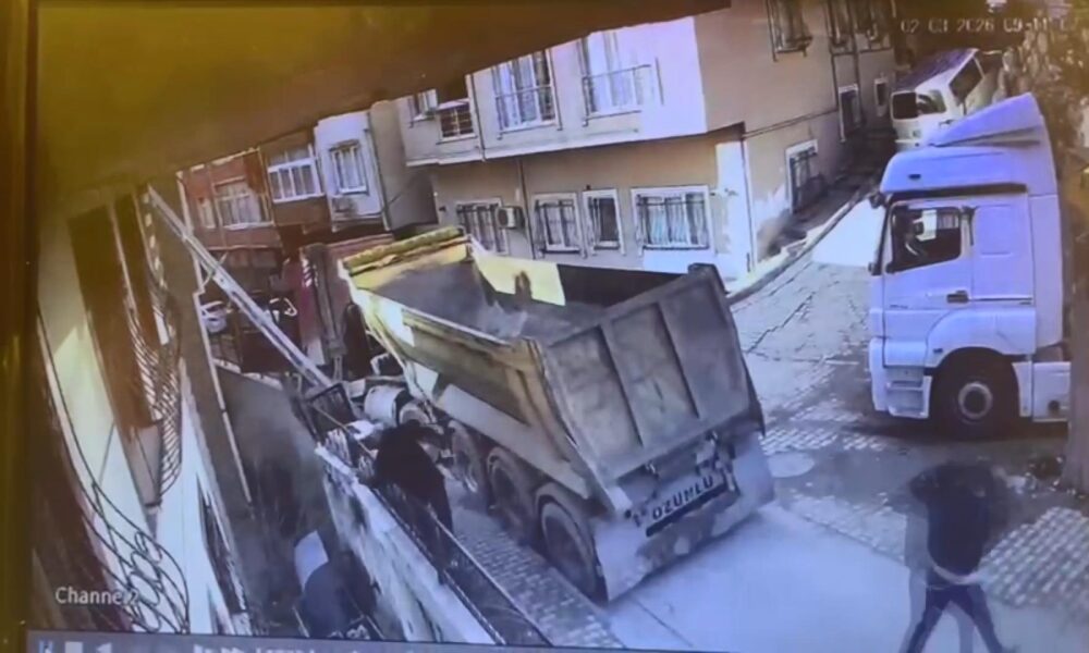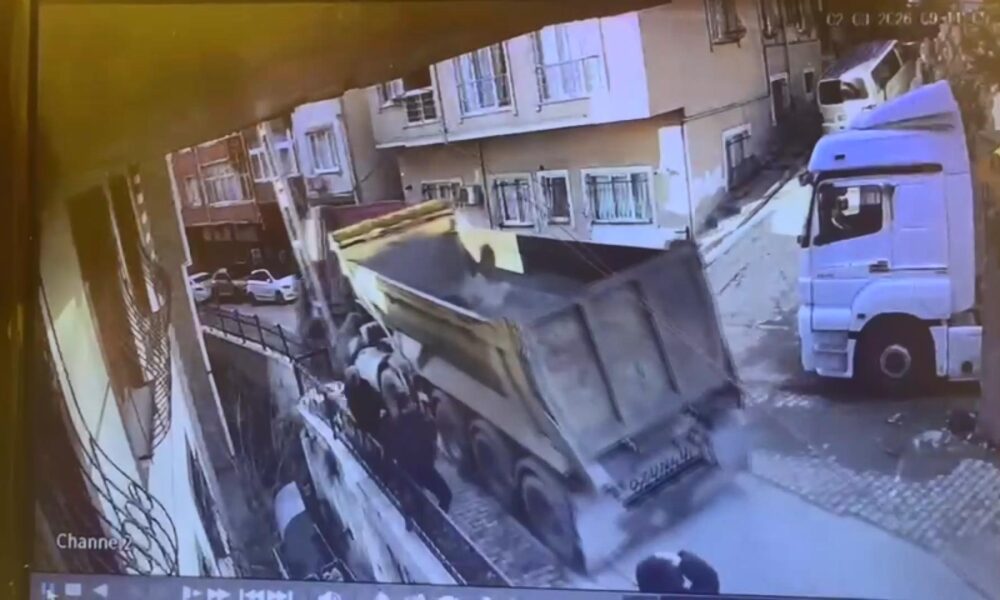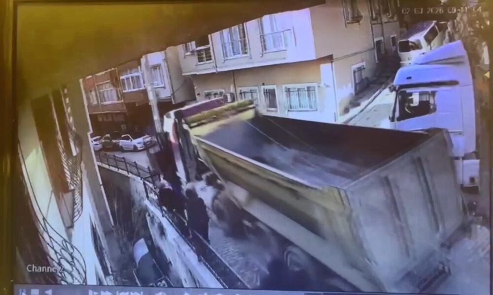 İstanbul – Kağıthane’de yokuştan kayan kamyonu durdurmak istedi 5 metreden düştü; o anlar kamerada