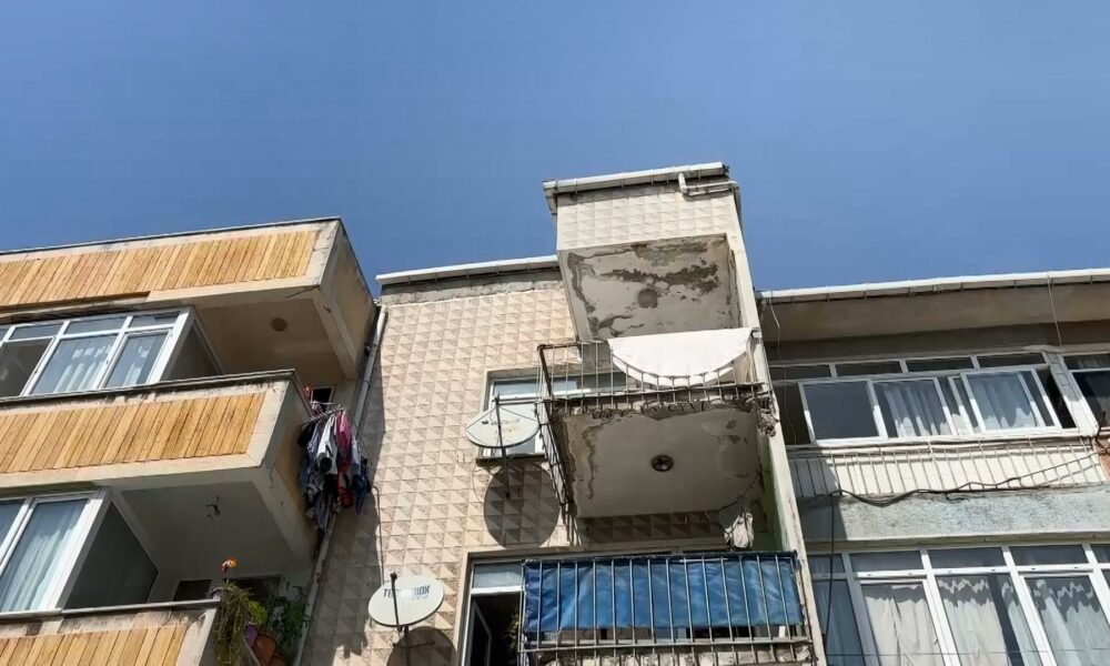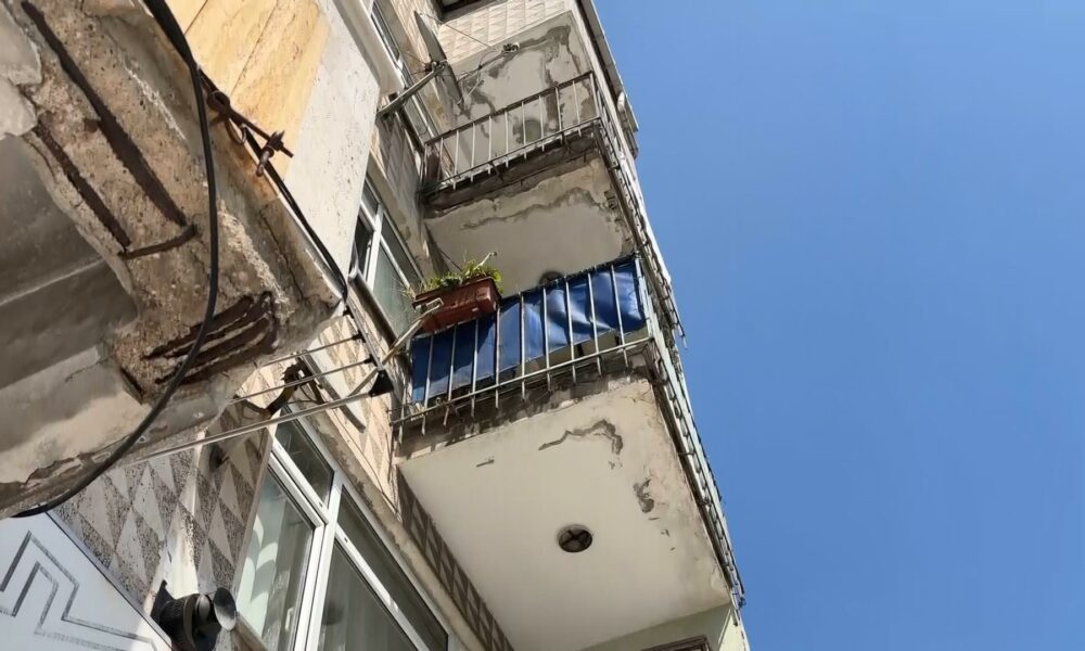ÜSKÜDAR'da Karacaahmet Mezarlığı'nın karşısındaki bazı apartmanların, çürüyen demirleri ve derin çatlakları dikkat çekti. Bir apartmanın, betonu dökülmüş balkonu, yoldan geçenleri bile tedirgin etti. ( FOTOĞRAF: MELİHCAN ÇALIŞKAN / İSTANBUL DHA) FOTOĞRAF