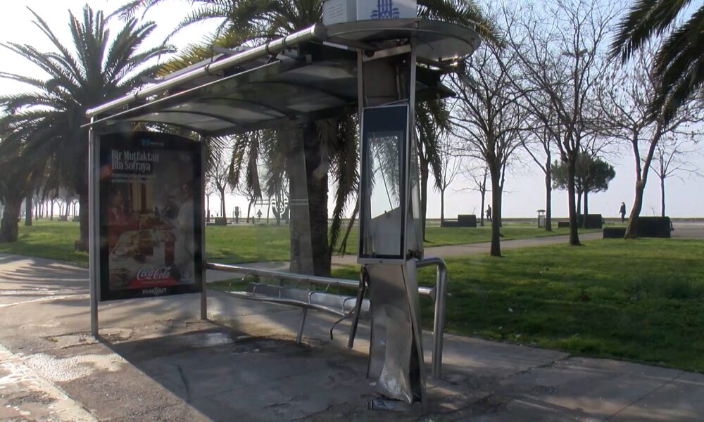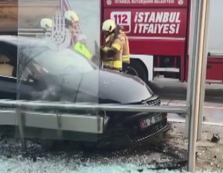 İstanbul – Kartal’da kırmızı ışıkta geçen otomobil TIR’a çarpıp durağa daldı