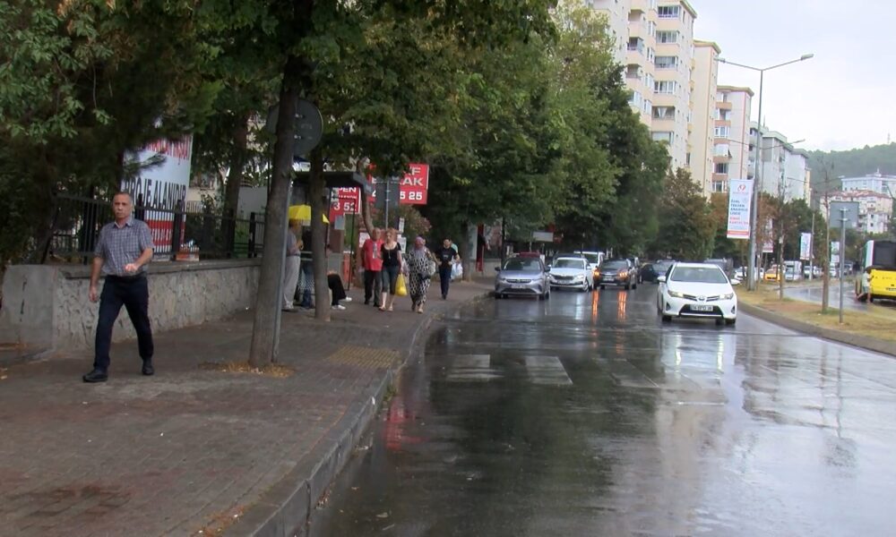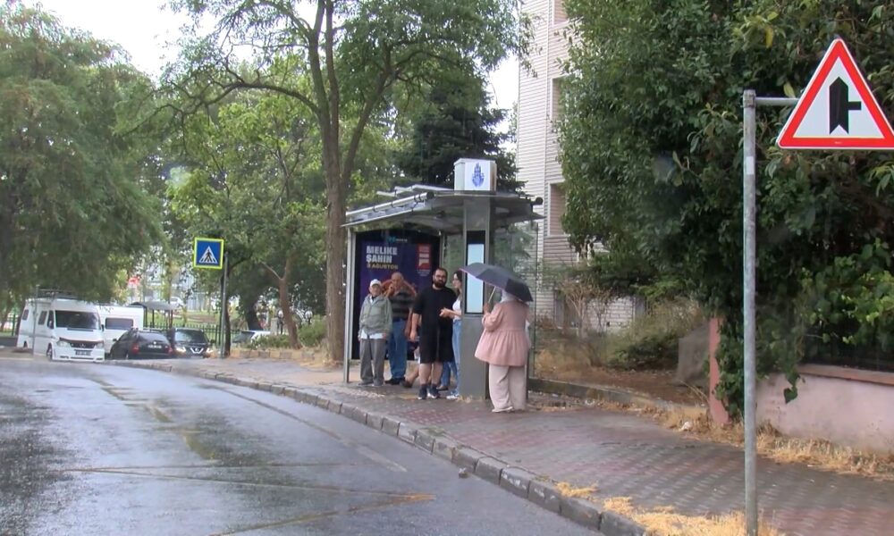 İstanbul’da uzun zamandır mevsim normallerinin üzerinde seyreden sıcaklık hafta sonunda kentin bazı ilçelerinde yerini yağmura bıraktı. Kartal’da öğle saatlerinde yağmur etkili oldu. Yağmura hazırlıksız yakalananlar otobüs duraklarına sığındı. Kimi ise ceketini şemsiye olarak kullandı.