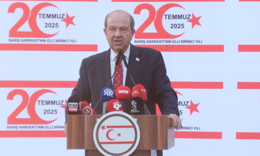 Tatar, “51 sene sonra halen daha Türk askerinin adadan çekileceğini ve Kuzey ve Güney ile birlikte Avrupa birliğine gireceğini ve Avrupa Birliğinin güvenlik mekanizmaları Kıbrıs Türkünü onun içerisinde koruyacağını, güvenliğini sağlayacağını zannedenlere buradan cevabımız asla öyle bir durum söz konusu değildir. Çünkü biz bu barışı ve huzuru ve güvenliği kolay bulmadık. Çok acılar çektik. Topyekün imhayla karşı karşıya kaldık. Mehmetçikler adaya geldi. Mehmetçikler caydırıcı güç olarak orada kalmaya devam edecektir. Biz burada milletin yerinden haykırıyoruz. Kıbrıs Türkü yalnız değildir. Mavi vatan Doğu Akdeniz, ana vatan için, bütün Türk dünyası için çok önemlidir. Bizim yolumuz ana vatanda birlikte bu kutlu yolu yürüyebilmektir. Anavatan Türkiye Kıbrıs Türkünün yanında olmuştur. Onun için biz hep birlikte birlik ve beraberliğimizi koruyarak, karşıdan karşı cephelerden saldırılara asla boyun eğmeyerek Kuzey Kıbrıs Türk Cumhuriyetinin haklı olduğu noktaya taşımak ve Kıbrıs Türk halkına refah içerisinde müreffeh yarınları yaşatmak hepimizin görevidir” dedi.