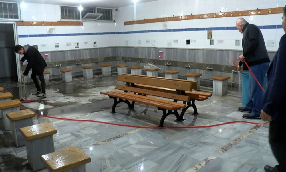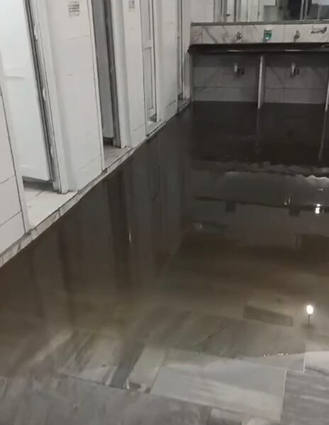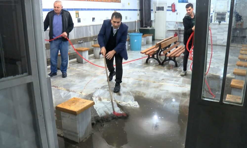 Küçükçekmece’de etkili olan yağışın ardından caminin şadırvanını su bastı