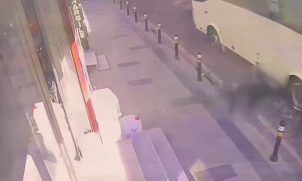 Küçükçekmece'de kaldırımda yürüdüğü sırada fenalaşarak yol düşen yaya, servis minibüsünün altında kaldı. Kaza anı güvenlik kamerasına yansırken minibüsün ezdiği kişi olay yerinde hayatını kaybetti. Servis minibüsü şoförü gözaltına alındı. (DHA)