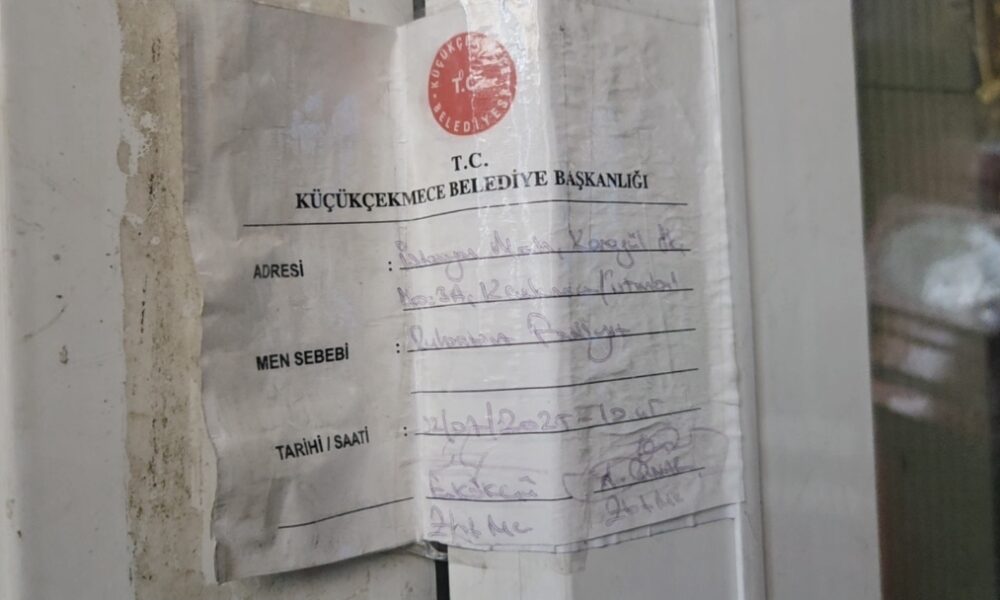 İstanbul – Küçükçekmece’de iş yeri mühürlenen esnaf ile zabıtalar arasında yaşanan gerginlik kamerada
