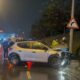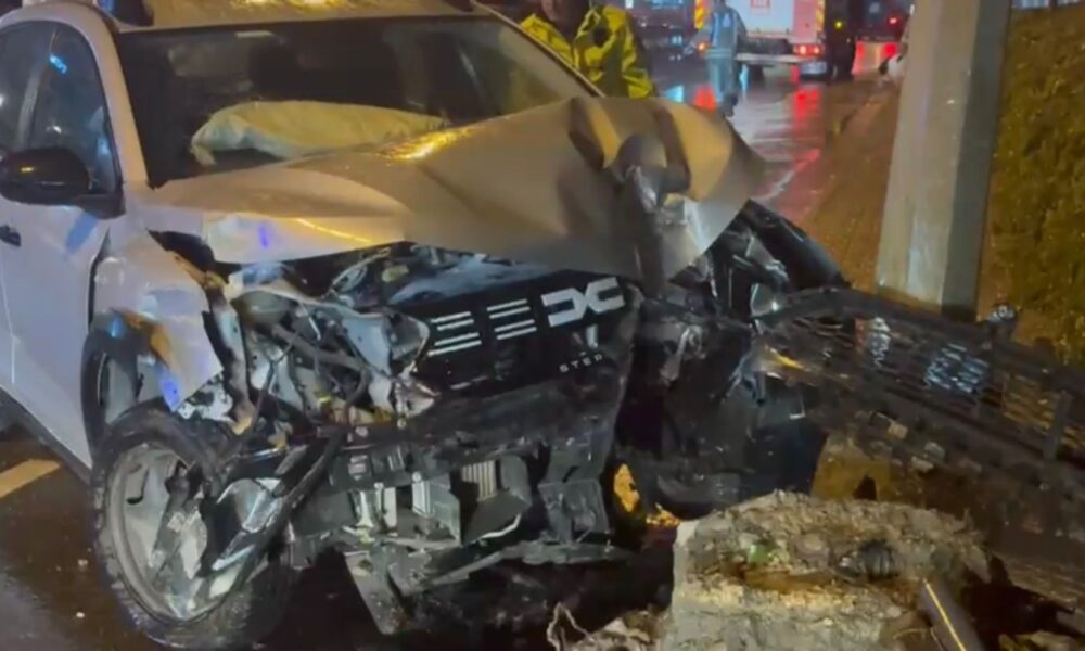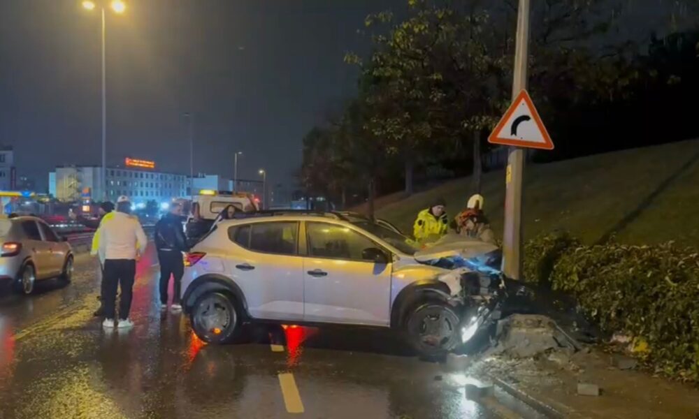 İstanbul – Küçükçekmece’de ıslak yolda kayan otomobil aydınlatma direğine çarptı
