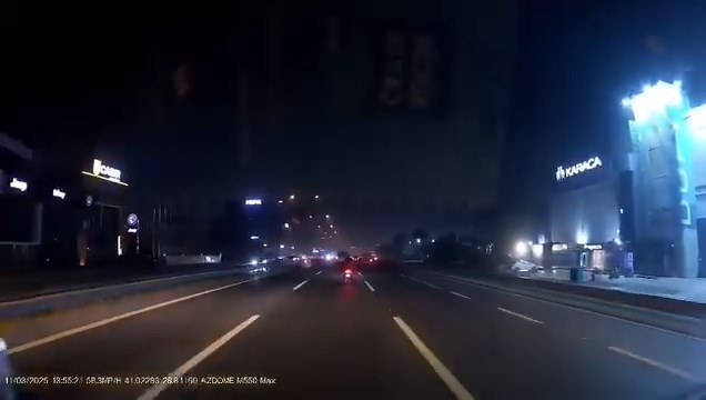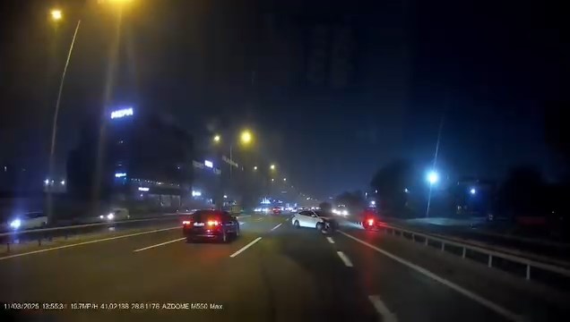 İstanbul- Küçükçekmece’de otoyolda savrulan otomobil bariyerlere çarptı; kaza kamerada