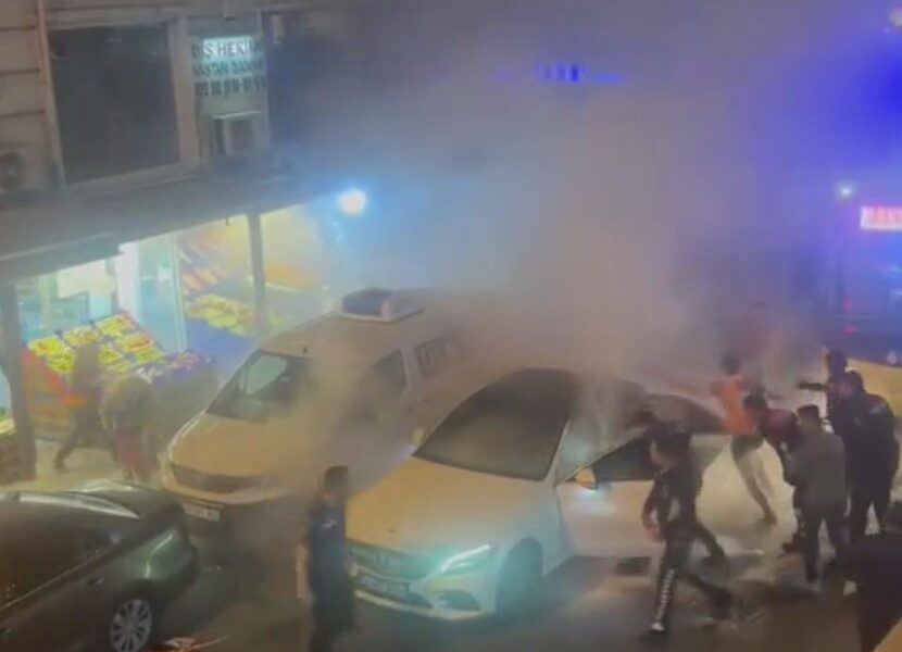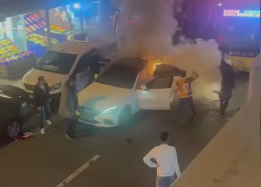 İstanbul – Küçükçekmece’de şampiyonluk kutlamalarında içerisinde havai fişek patlayan otomobil yandı