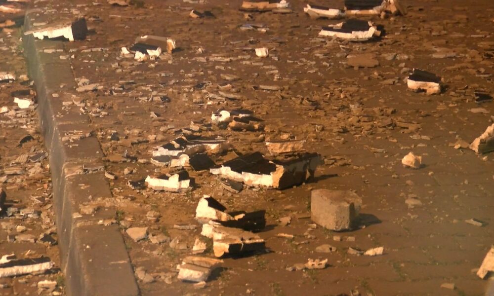 İstanbul – Küçükçekmece’de şiddetli rüzgar nedeniyle bir binanın dış cephesi koptu