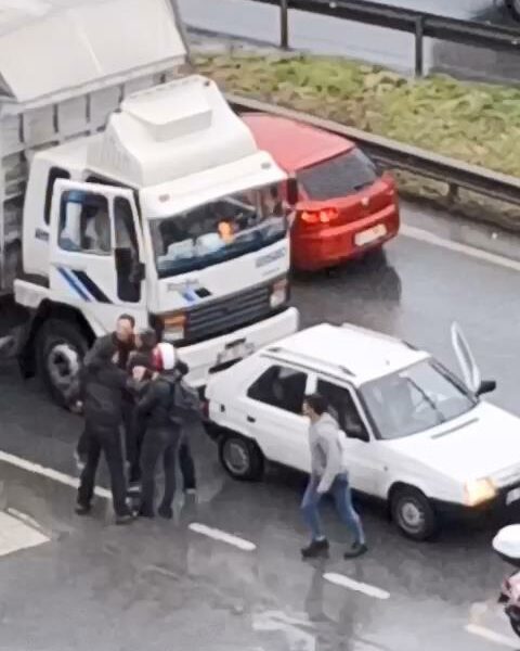 İstanbul – Küçükçekmece’de sürücülerin çekiçli yol verme kavgası