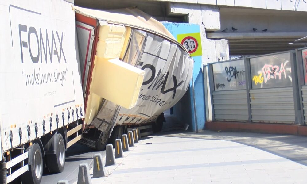 İstanbul- Küçükçekmece’de TIR alt geçide sıkıştı