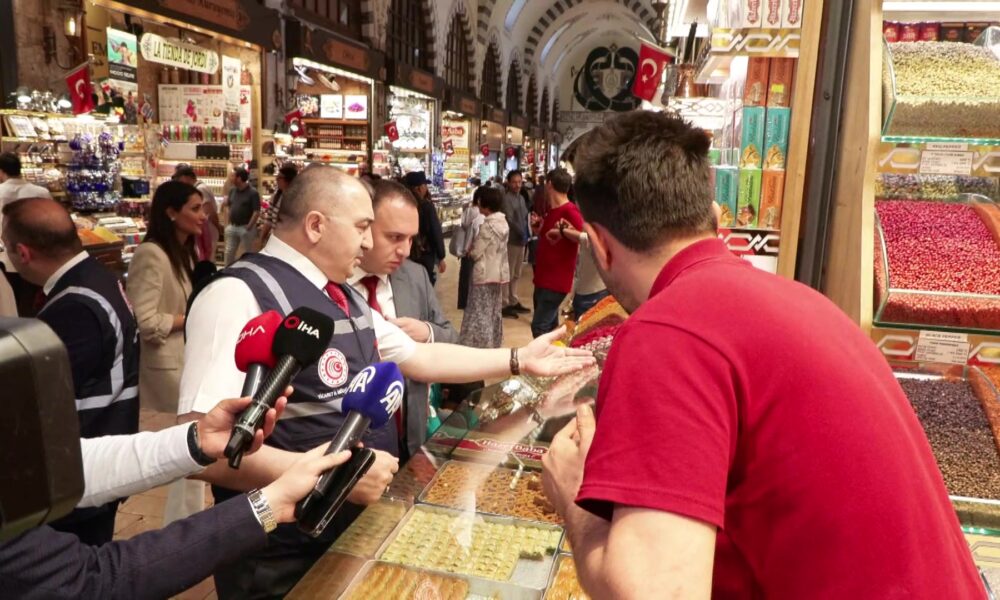 Kurban Bayramı öncesi İstanbul’un da aralarında bulunduğu 10 ilde eş zamanlı denetimler yapıldı. İstanbul İl Tarım ve Orman Müdürü İsmail Menteşe, saat 10.00’da Eminönü Mısır Çarşısı’nda gerçekleştirilen denetime katıldı. Denetimlerde ürünlerin fiyat etiketleri, fahiş fiyat uygulamaları, etiketlerin Türkçe olup olmadığı, fiyat değişim tarihi ve üretim yeri bilgisi kontrol edildi. Fiyat etiketi bulunmayan, etiketlerde Türkçe ibare yer almayan, fiyat değişim tarihi veya üretim yeri bilgisi eksik olan işletmelere ceza yazıldı.