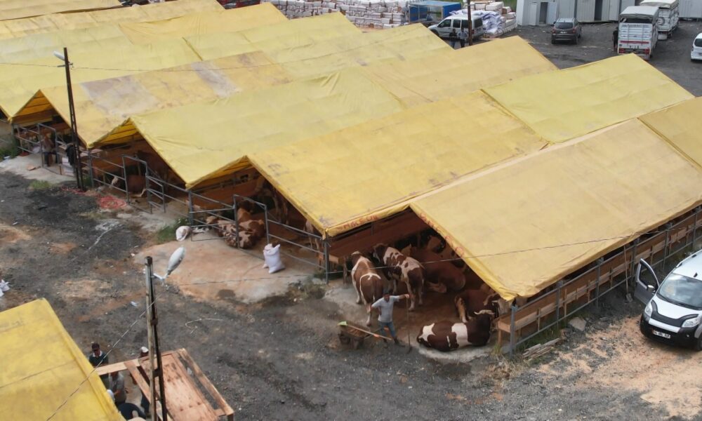Kurban bayramına sayılı günler kala, Anadolunun birçok ilinden kurbanlık hayvanlar İstanbula getirilmeye başlandı. Dün gece saatlerinden itibaren girişine izin verilen kurbanlıklar kentin çeşitli noktalarında kurulan hayvan pazarlarına sevk edilirken kamyonlarla getirilen kurbanlıklar çadırlara yerleştiriliyor. Esenyurtta 2 bin 200 kurbanlığın satılacağı pazar yeri havadan görüntülendi. Kurban pazarının bin 300 kilogramlık şampiyonu Poyraz ise 400 bin liraya satışa çıkarıldı. Kurban pazarının hareketli geçeceğini söyleyen satıcılar, alıcıların erkenden kurbanlıklarını almaları yönünde çağrıda bulundu.