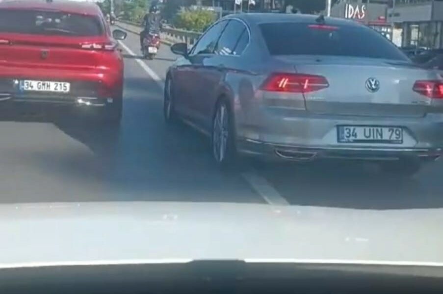 MALTEPE D-100 Karayolunda ilerleyen otomobilin önü, başka bir araç tarafından kesildi. Otomobilden inen bir kişi, önünü kestikleri aracın camını kırdı. O anlar cep telefonu kamerasıyla kaydedildi. (FOTOĞRAF: CENGİZ ÇOBAN / İSTANBUL DHA )