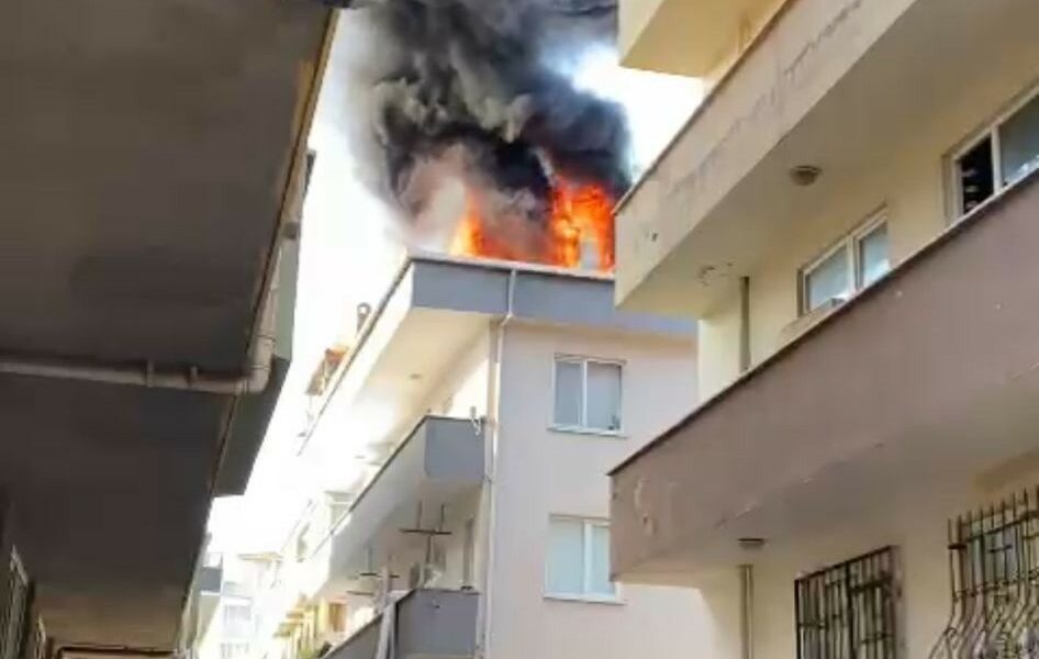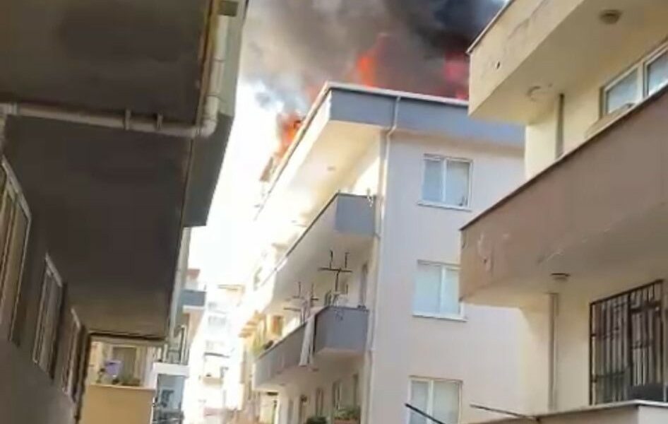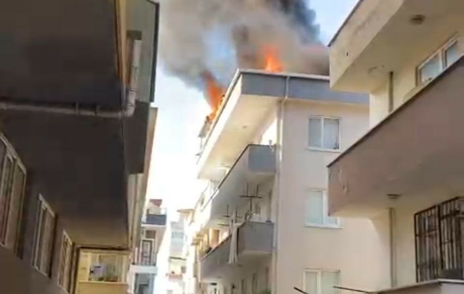 Maltepe’de 4 katlı binanın çatısı alev alev yandı