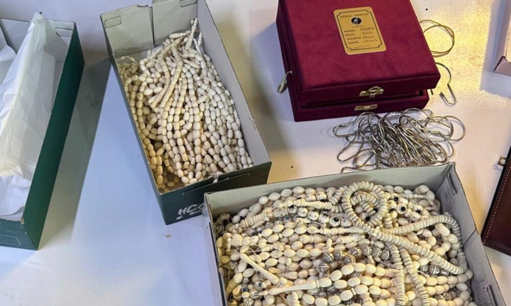 Doğa Koruma ve Milli Parklar Genel Müdürlüğü’ne gelen ihbar üzerine başlatılan soruşturma kapsamında polis ekipleri iş yerine operasyon düzenledi. İş yerinde yapılan aramada; 106 adet fil dişi tespih, 101 adet fil dişi tespih parçası, 180 adet kurt dişi, 10 adet halka şeklinde içi boş fil dişi, 8 adet yumurta şeklinde fil dişi, 13 adet Caretta caretta kabuğundan yapılmış tespih, 8 adet aslan tırnağı, 1 kilo 250 gram fil dişi parçası, 52 adet dekoratif fil dişi obje, 1 adet geyik boynuzundan yapılmış tespih ve yüzük, 1 adet timsah derisi ve timsah dişlerinden oluşan şapka, 1 adet balina dişinden yapılmış tespih, 8 adet karaca trofesi, 1 adet ceylan postu, 1 adet gelincik postu, 1 adet timsah kafası, 1 adet vaşak kafası, 1 adet engerek yılanı tahniti, 3 adet kunduz trofesi ve çene takımı, 10 adet timsah pençesi, 10 adet timsah dişi, 2 adet bufalo boynuzu, 33 adet bufalo boynuzundan yapılmış tespih ele geçirildi. Yapılan inceleme sonrası iş yeri sahibine ilgili kanunlar gereği idari para cezası uygulanırken, yerli türlere ait ürünler için ayrıca tazminat cezası kesileceği öğrenildi. Şüpheli hakkında adli işlem başlatıldı.