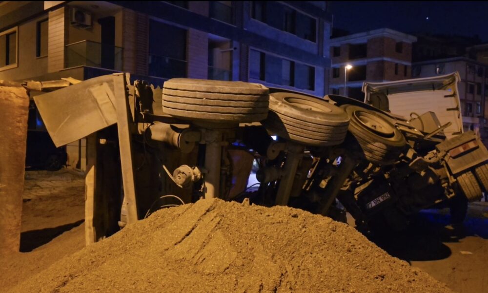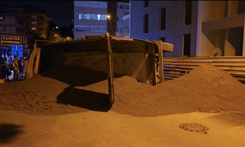 İstanbul – Maltepe’de hafriyat kamyonu, yükünü boşalttığı sırada devrildi