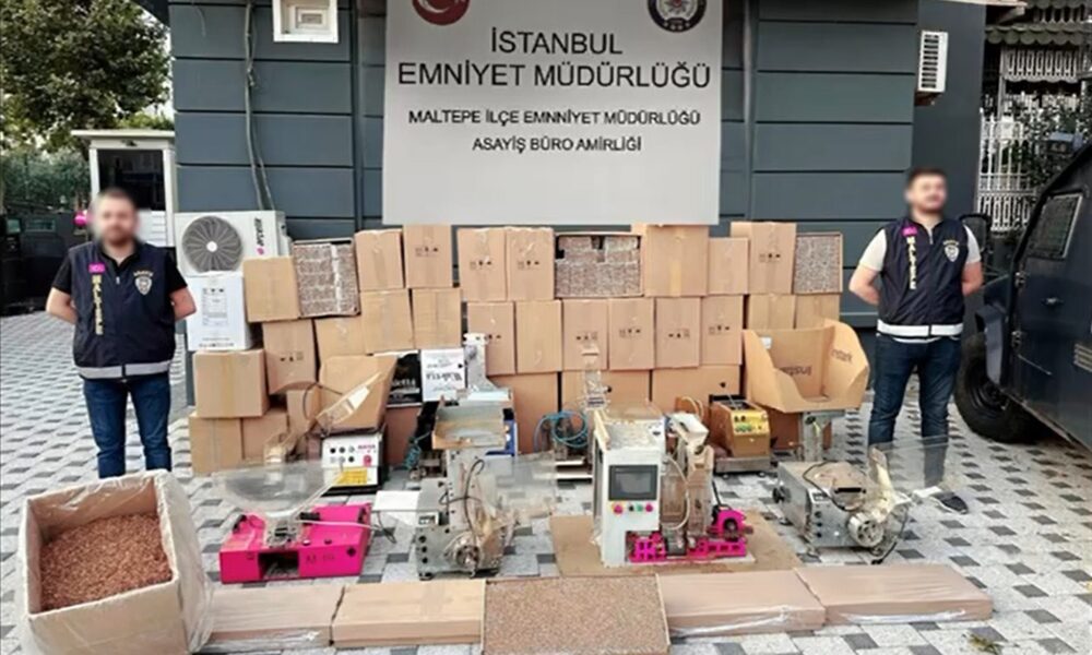 • Maltepe'de polis ekipleri, kaçak sigara üretimi ve ticareti yapan adrese operasyon düzenledi. Belirlenen adrese düzenlenen operasyonda 1 kişi yakalanırken 286 binin üzerinde dolu ve boş makaron, 8 makaron doldurma makinesi, 12 buçuk kilogram tütün ve 110