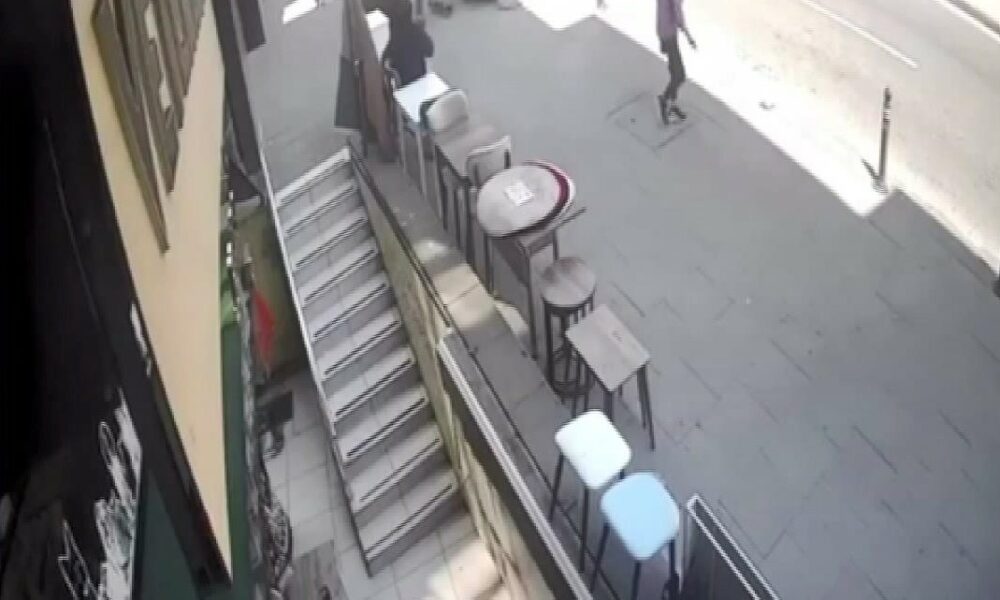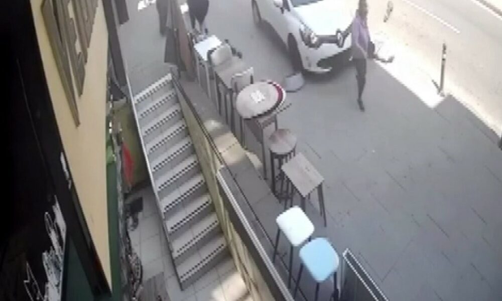 İstanbul – Maltepe’de otomobilin kaldırımda yürüyen kadına çarptığı anlar kamerada