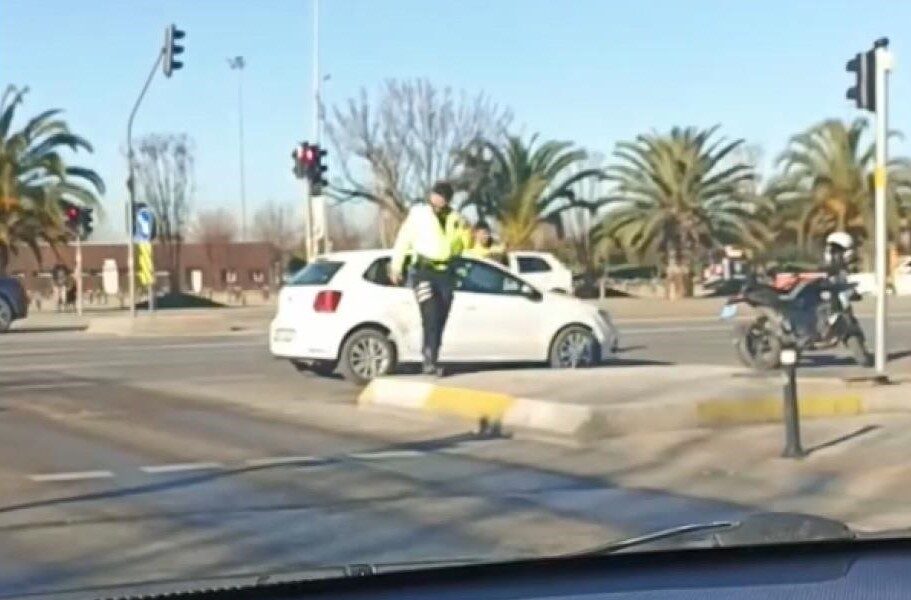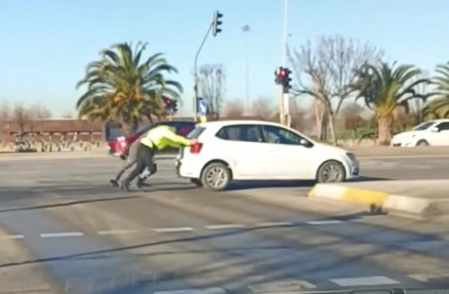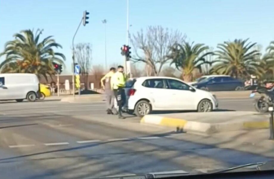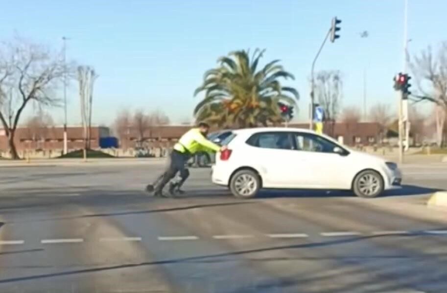 Olay, saat 09.00 sıralarında Mimar Sinan ışıklar mevkiinde meydana geldi. Edinilen bilgiye göre sahilyolunda bir otomobil hasarlı kazaya karıştı. Olay yerine gelen trafik polisi A.B. kaza sonrası arızalanan aracı, trafiğe engel olmaması için park görevlisiyle iterek yol kenarına aldı. O anlar cep telefonu kamerasına yansıdı.