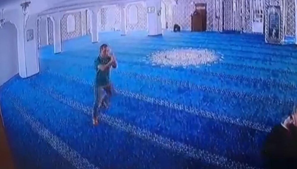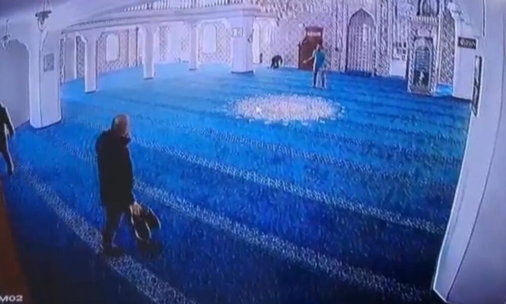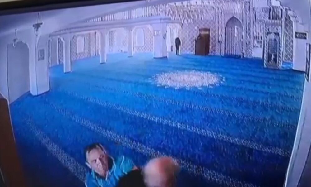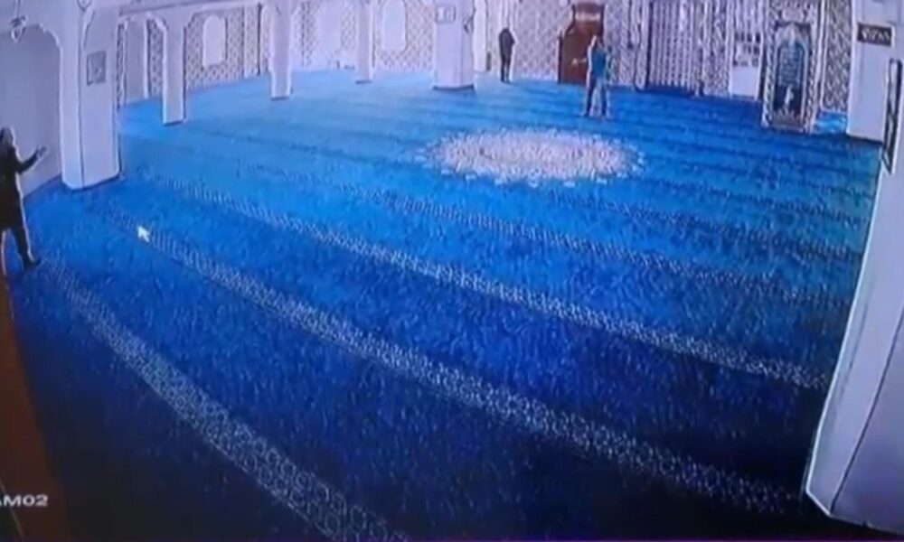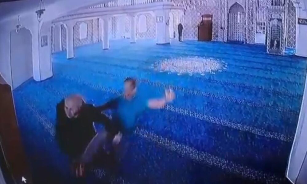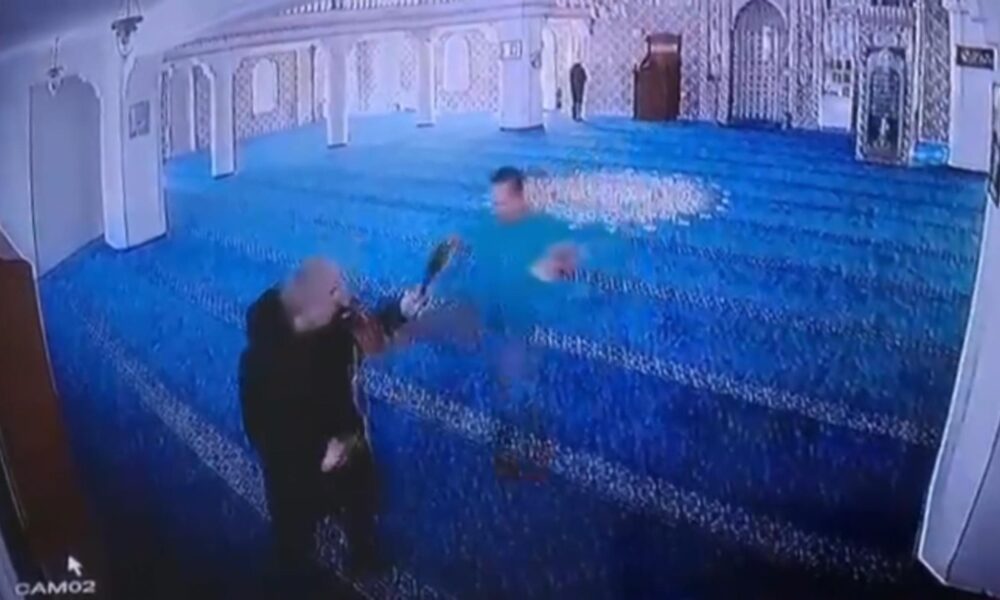 İstanbul – Maslak’ta camide telefonla konuşan adamı darbetti; o anlar kamerada