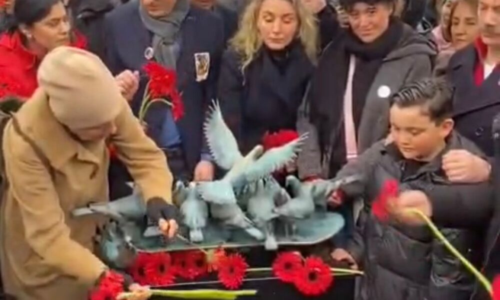 Törende konuşan anne Yasemin Minguzzi, “Ben bu heykelin anlamını sizlere anlatayım. Burada 15 tane güvercin var. Ahmet 15 yaşını dolduramadı, 14 yaşında aramızdan gitti. Destekleriniz için teşekkür ediyorum, çok kalabalık oldu yine sağolun. Bundan sonrada durmayalım yanımızda olun, durmayacağız” dedi.
