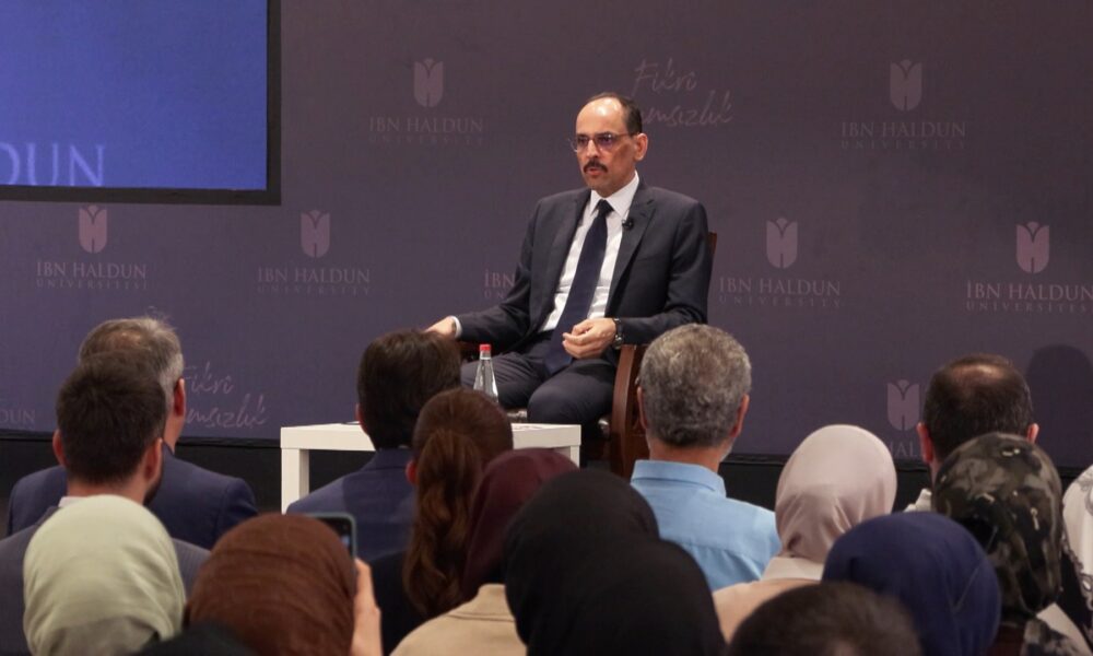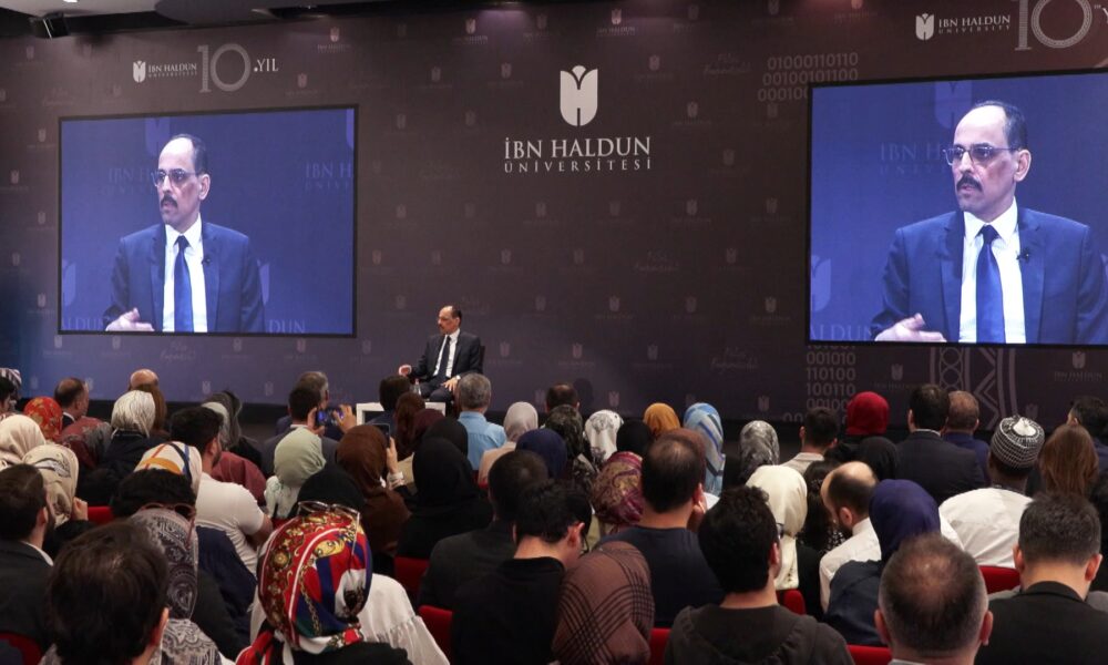 İbn Haldun Üniversitesi (İHÜ) tarafından Geliştiren Kültür ve İklim teması ile bu yıl 3ncüsü düzenlenen ve odağını kültürel iklim meselelerine çeviren İbn Haldun Akademi ’25 programı kapanış dersi Milli İstihbarat Teşkilatı (MİT) Başkanı İbrahim Kalın tarafından verildi. Programa Kalın’ın yanı sıra Afyonkarahisar Valisi Kübra Güran Yiğitbaşı, İHÜ Mütevelli Heyeti Başkanı Prof. Dr. İrfan Gündüz, İHÜ Başkan Vekili Necmeddin Bilal Erdoğan, Rektör Prof. Dr. Atilla Arkan ve öğrenciler katıldı.