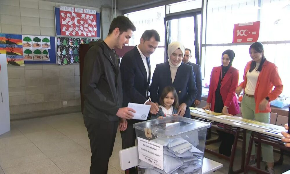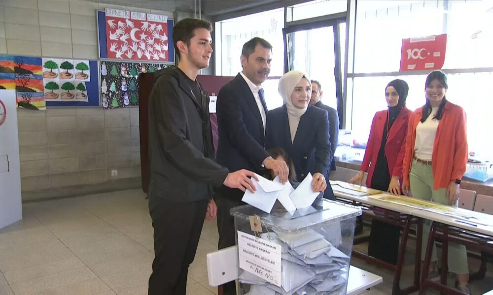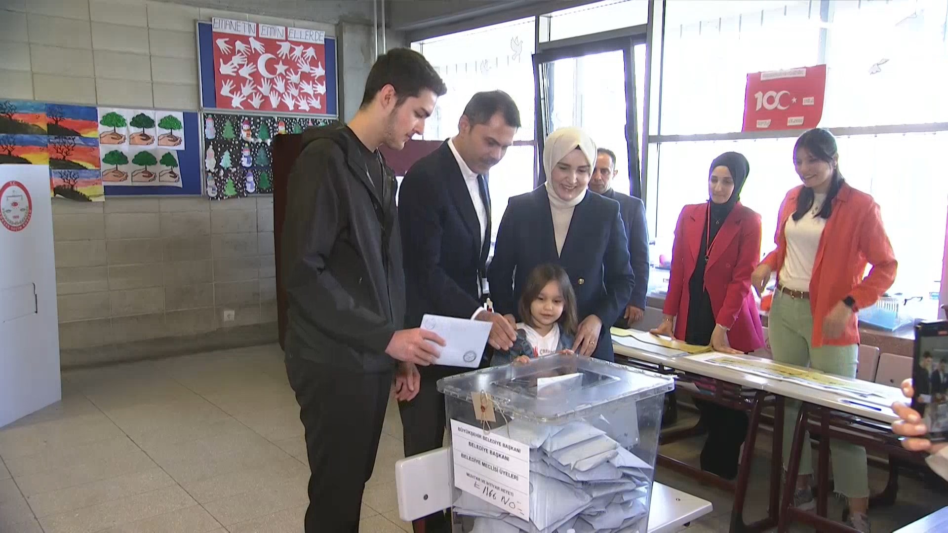 İstanbul Büyükşehir Belediye Başkan Adayı Murat Kurum, eşi Şengül Kurum ve oğlu Mehmet Kurum ile birlikte Kağıthane İmece İlkokulu 1166 numaralı sandıkta oy kullandı
