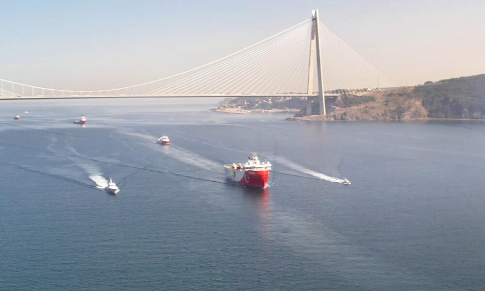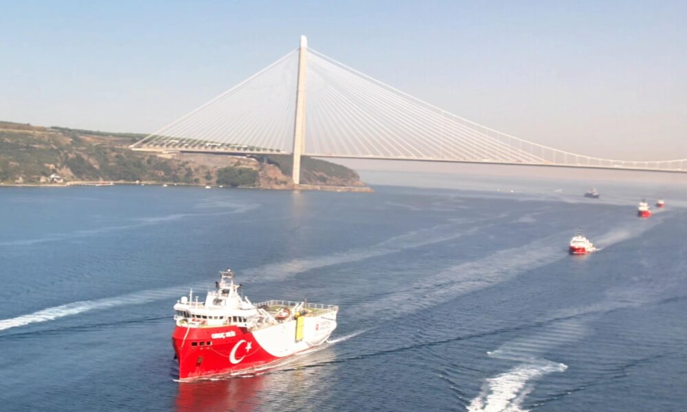 İstanbul – Oruç Reis Araştırma Gemisi İstanbul Boğazı’ndan geçiyor-1 //Havadan görüntüler